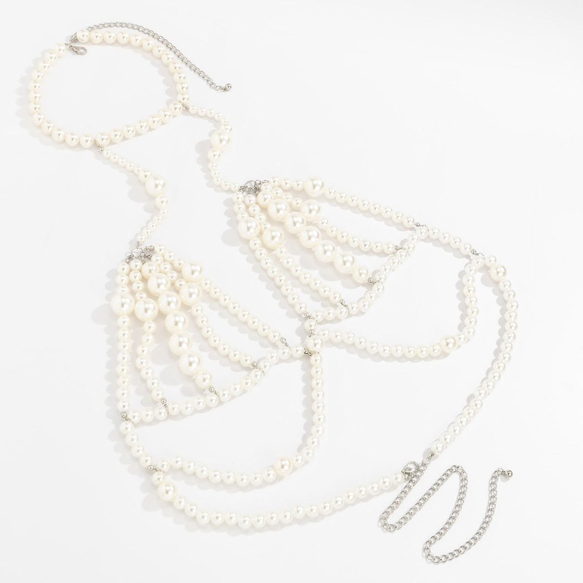 Are you looking for something to bring your outfit to the next level? This body jewelry is perfect for you. Made from iron alloy metal chain. it is designed in a crop halter top. A waist chain variant is also available. The artificial pearl beads give a classic feel to this piece. Pair it with your favorite top and jeans for a casual fancy look.