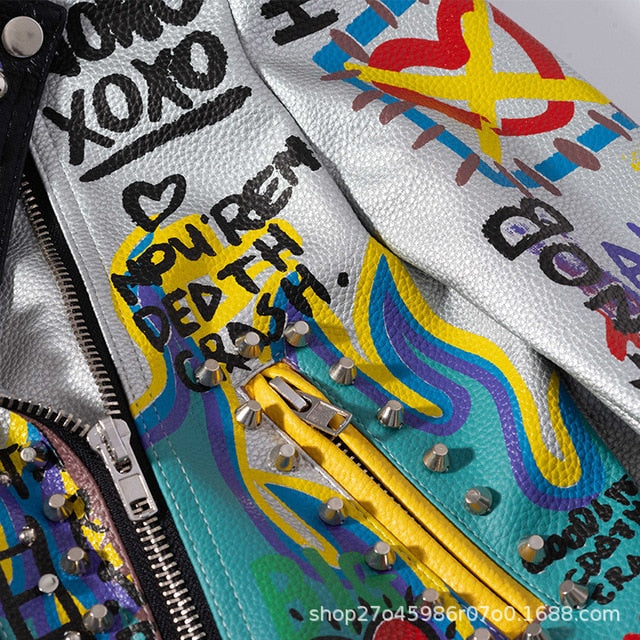This Expecting For A Heaven Jacket is an ideal choice for women. It is crafted from quality faux leather and features a printed pattern along with rivet decoration for an eye-catching look. It also has a secure zipper closure and long sleeves, making it perfect for colder days.