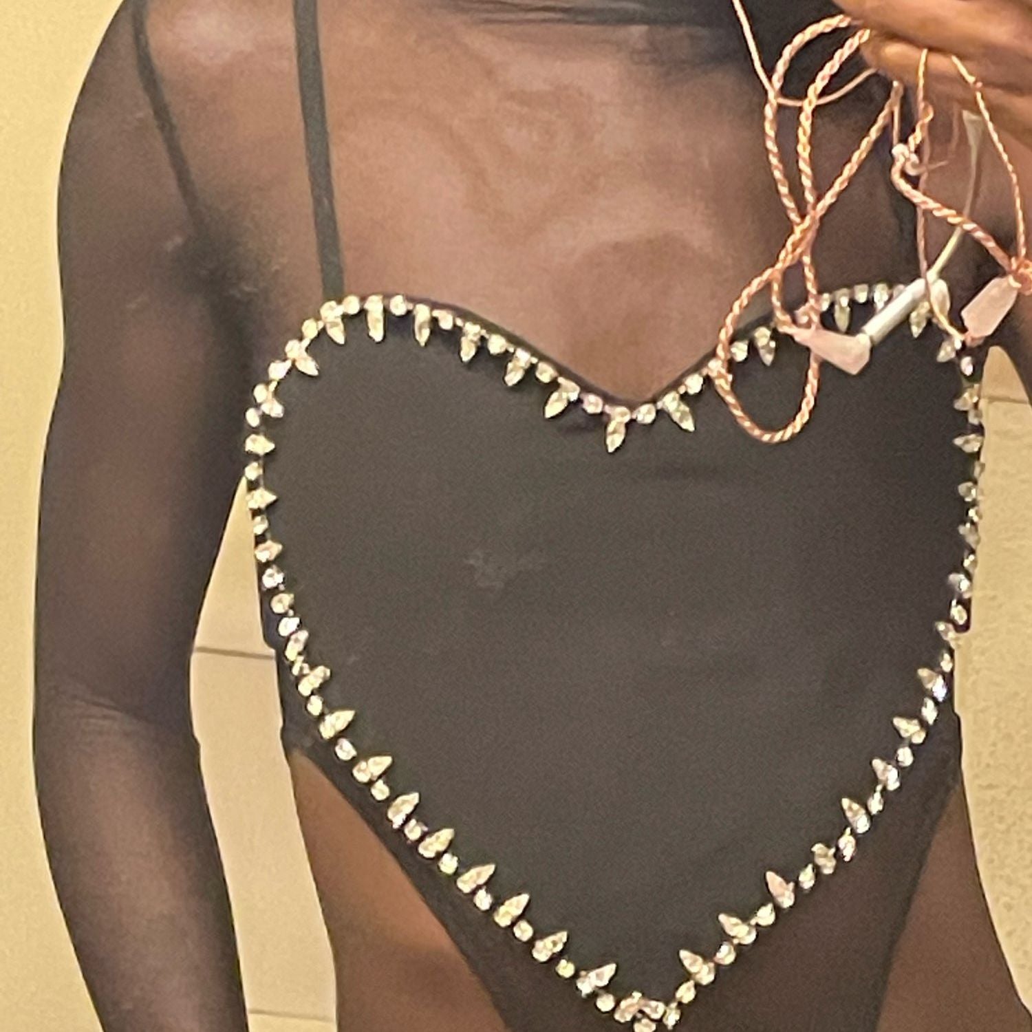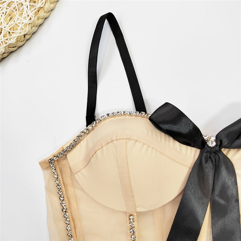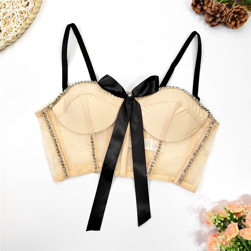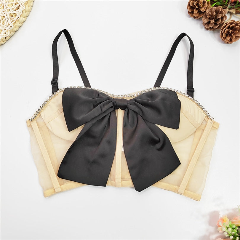 Dress up in this sweetheart neckline women's crop top. This fun and fashionable piece makes her stand out from the crowd. The flattering spaghetti straps and whimsical rhinestone or bow decoration embellishments make this a wardrobe staple she'll love to wear.