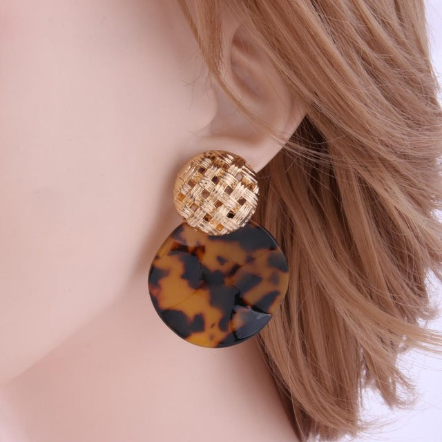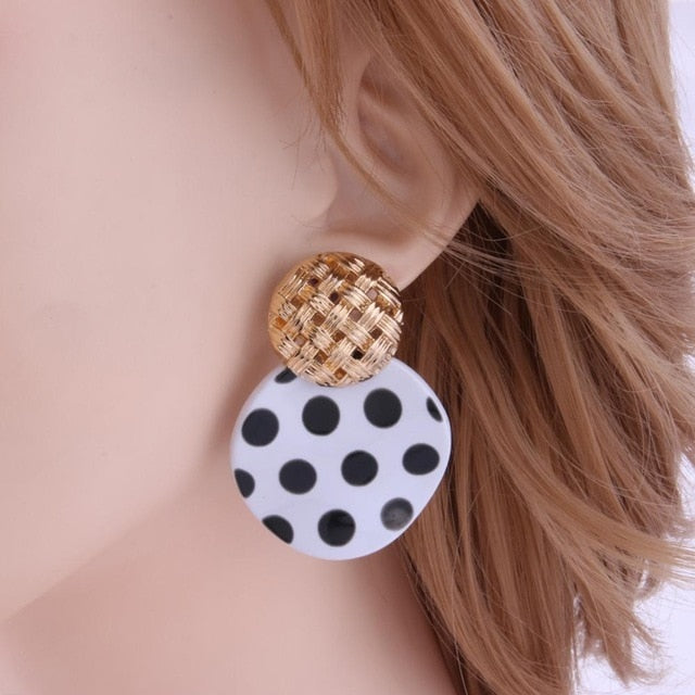 Korean Round Geometric Gold Sequin Pendant Woman Earrings