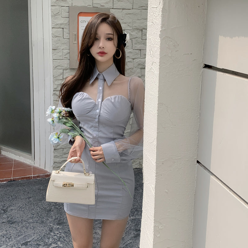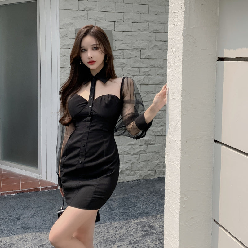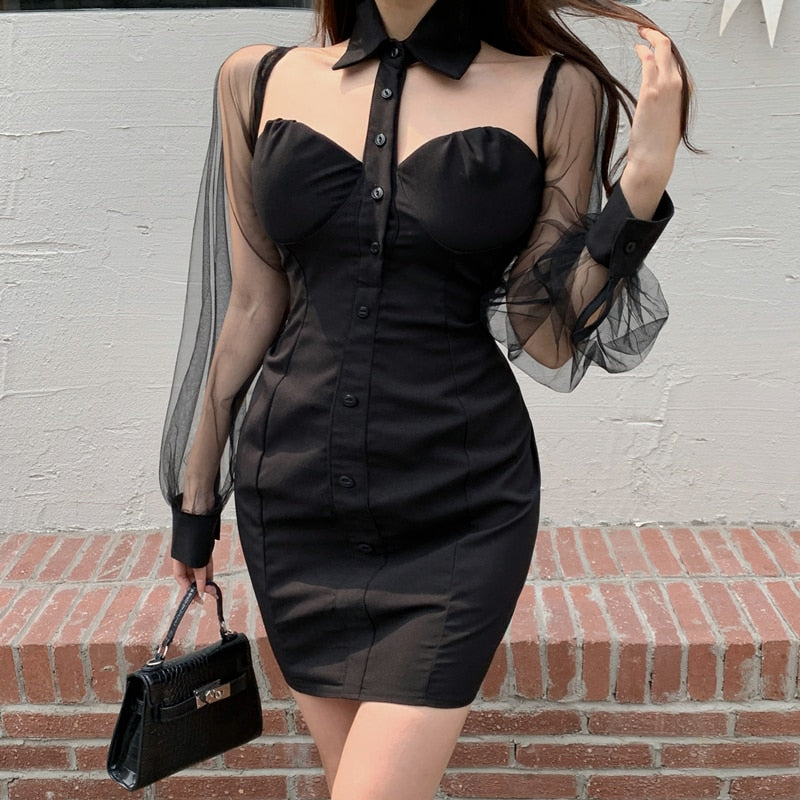 A sleek and sophisticated dress with a flattering silhouette, this dress is perfect for an office party or an evening out. The mini length and long sleeves make it perfect for warmer weather, while the microfiber and mesh material makes it ideal for the office. The turn-down collar is perfect for the office and a strapless bra ensures that the dress stays put.