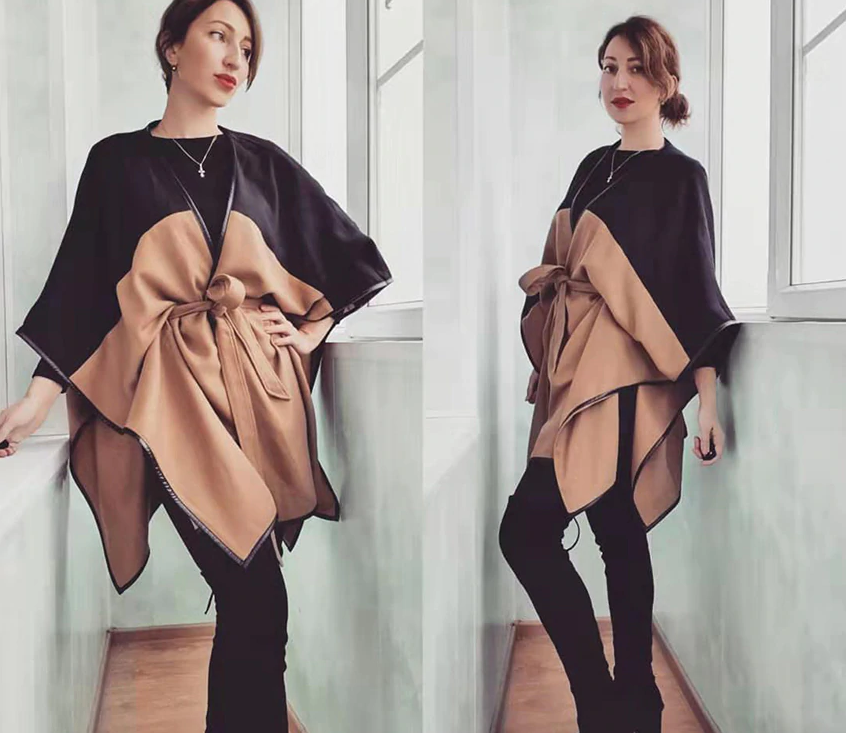 Elegant Poncho Scarf With Cashmere Material And Waistband Decoration