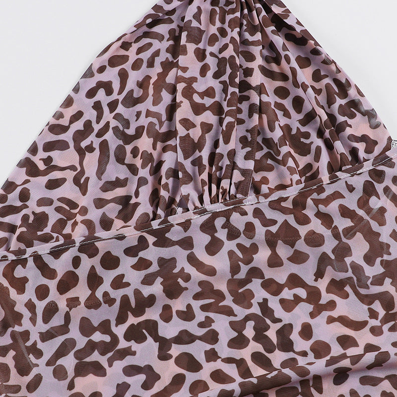 Sleeveless Double Strap One-Shoulder Mini Dress Made From Polyester Spandex Material with Full Leopard Pattern