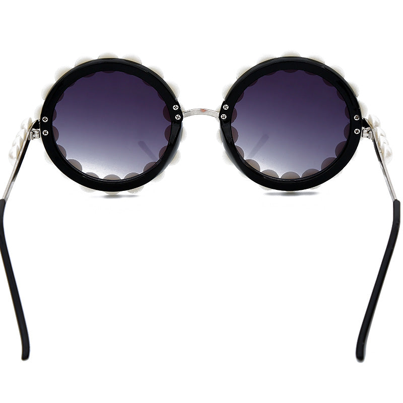 Alloy Frame UV400 Gradient Lens Round Sunglasses with Pearl Decoration