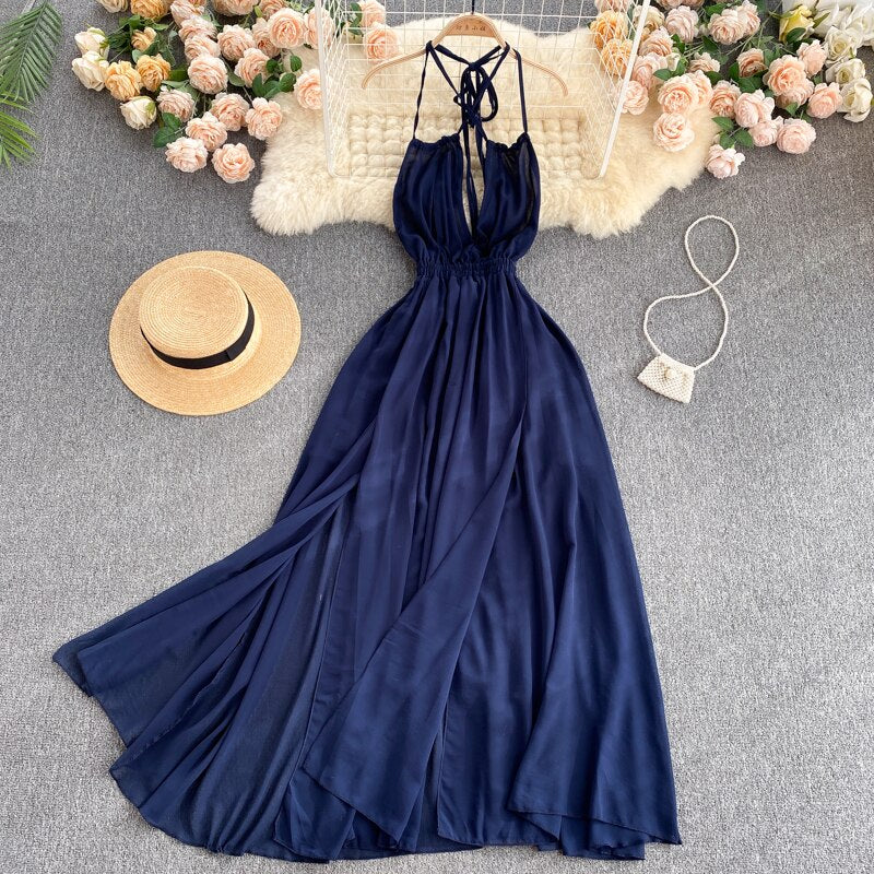 This alluring maxi dress has a stylish but modest design that is sure to work with any wardrobe. This flattering style has a classic, modest silhouette that's great for everyday wear. The open back makes it easy to move around, which is perfect for a day out in the sunshine. This simple style is great for a fun, casual day at the beach.