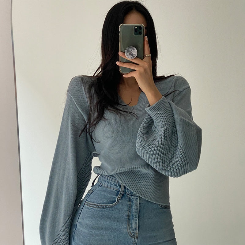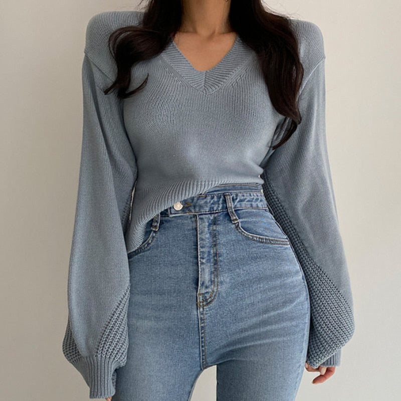 This sweater is made from high-quality acrylic, cotton, and polyester blend. The v-neck style with a lantern sleeve is an attractive combination. The back lace style also adds a fun twist to the classic design.