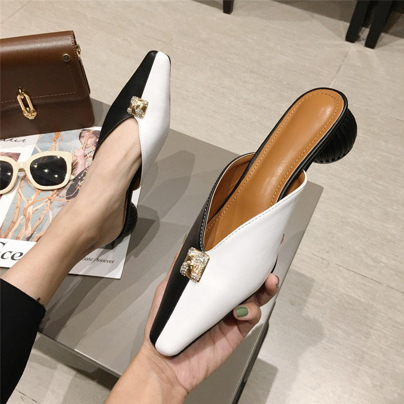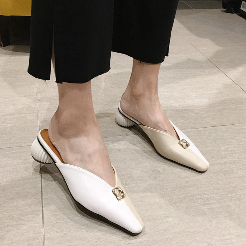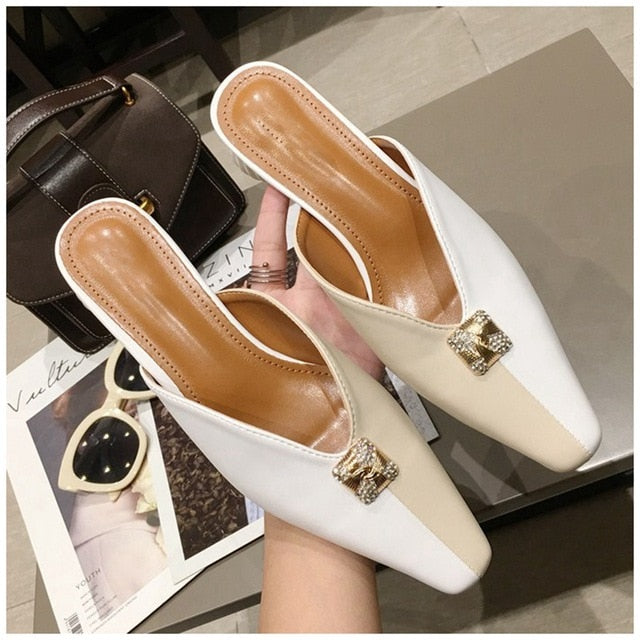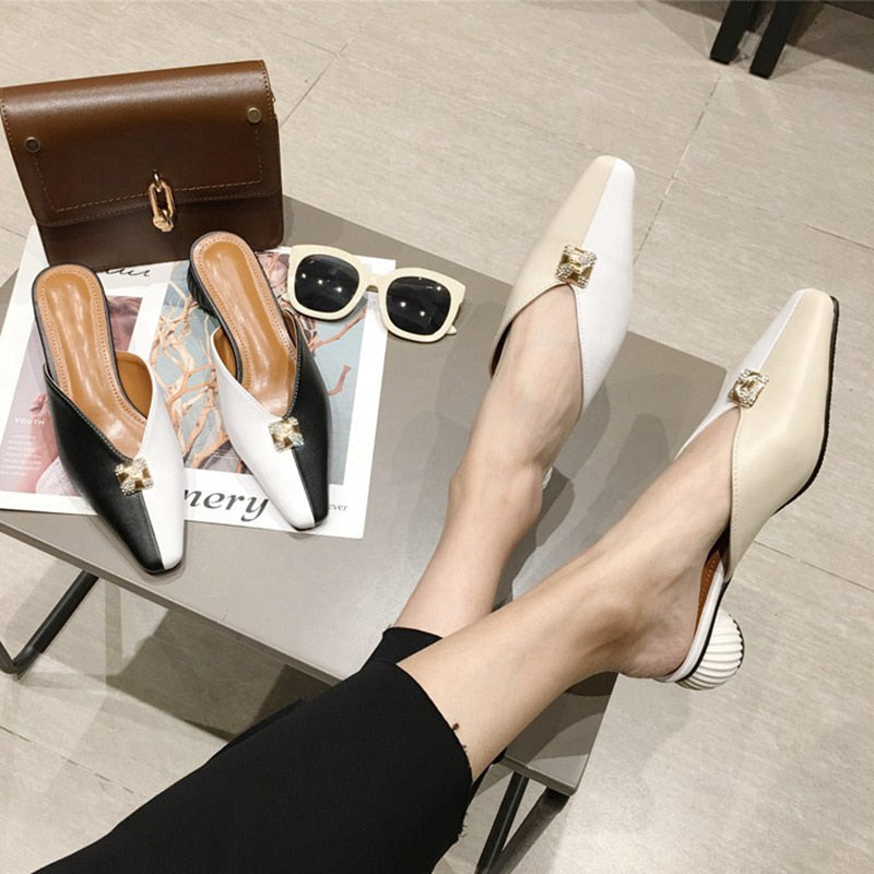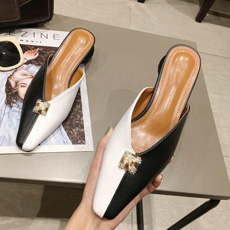 Microfiber Mixed Side Color Mules Shoes