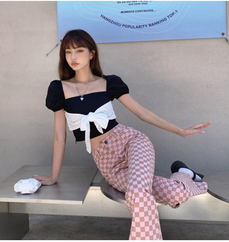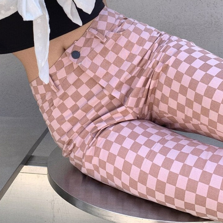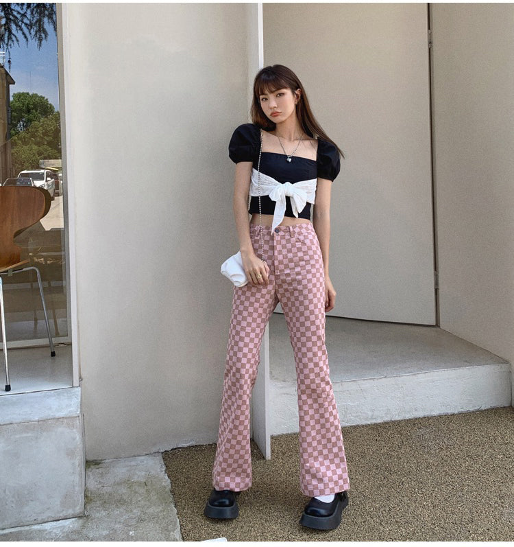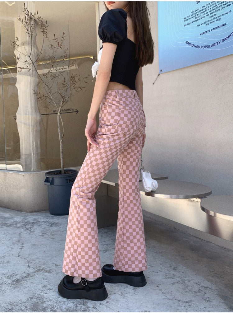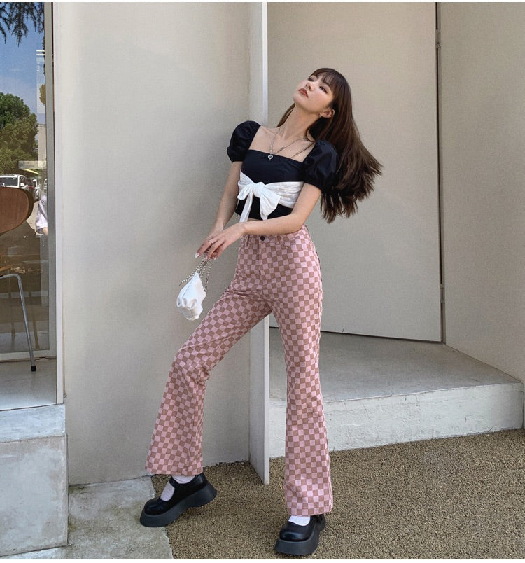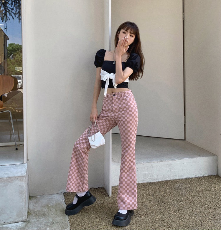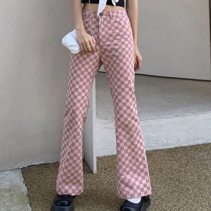 These pants are a perfect match for the warm summer days ahead. Made of cotton and featuring a high waist, flare legs, and two pockets, these pants are sure to be a favorite. The pink plaids pattern will keep you looking stylish and confident.