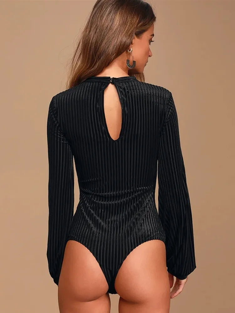 This sleek and stylish bodysuit is crafted from a blend of polyester, cotton, and spandex for a comfortable fit and durable wear. The classic striped pattern adds a timeless touch and its skinny silhouette allows it to be paired with any bottom for an effortlessly chic look.