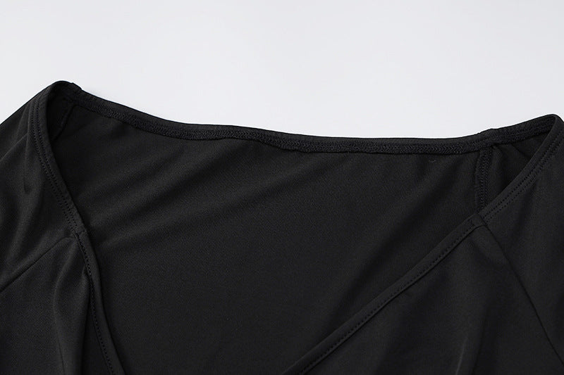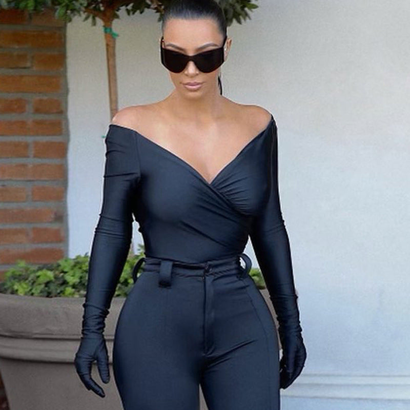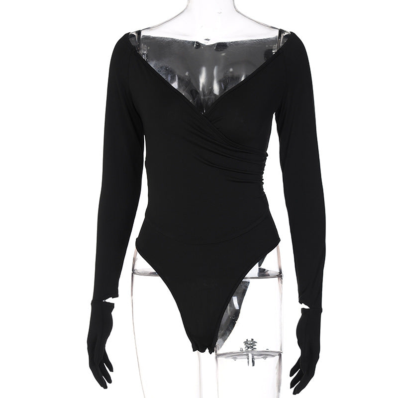This cute bodysuit features a v-neck and long sleeves. The polyester material is lightweight and solid. This bodysuit is perfect for layering under any top.