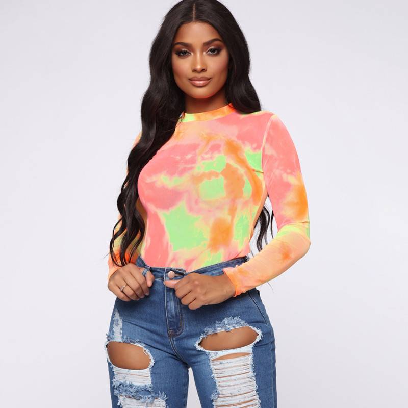 Polyester Spandex on Knitted Tie Dye Skinny Bodysuit