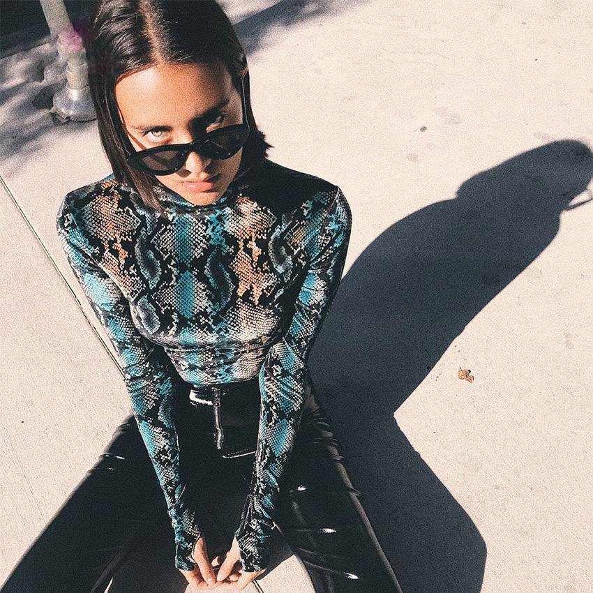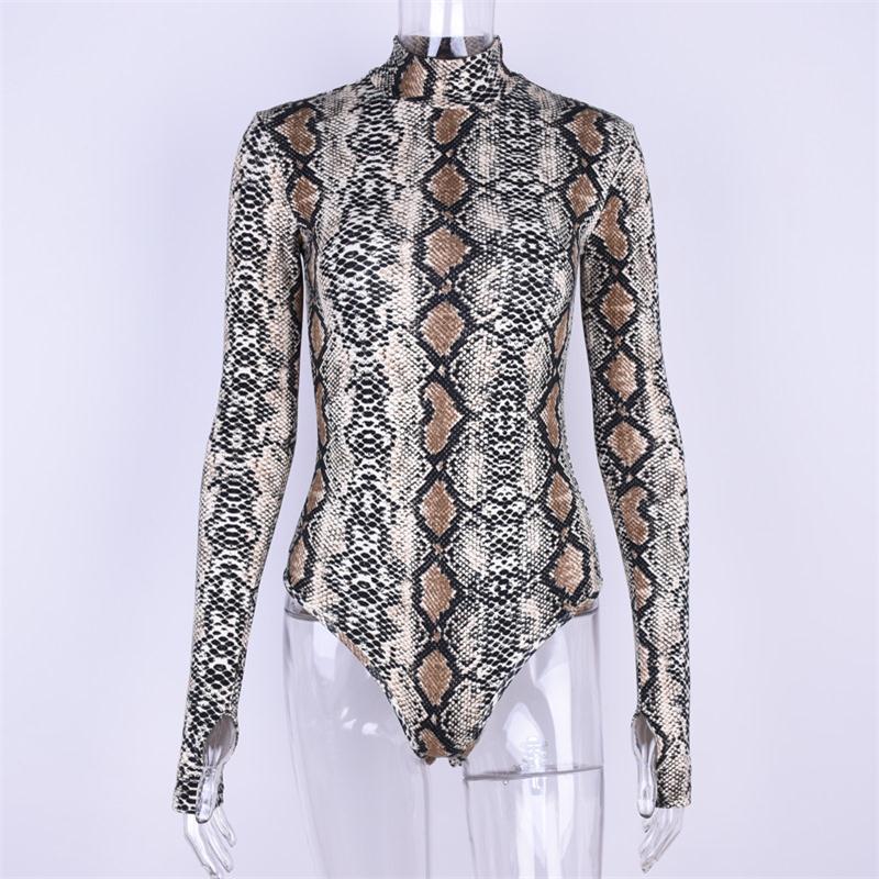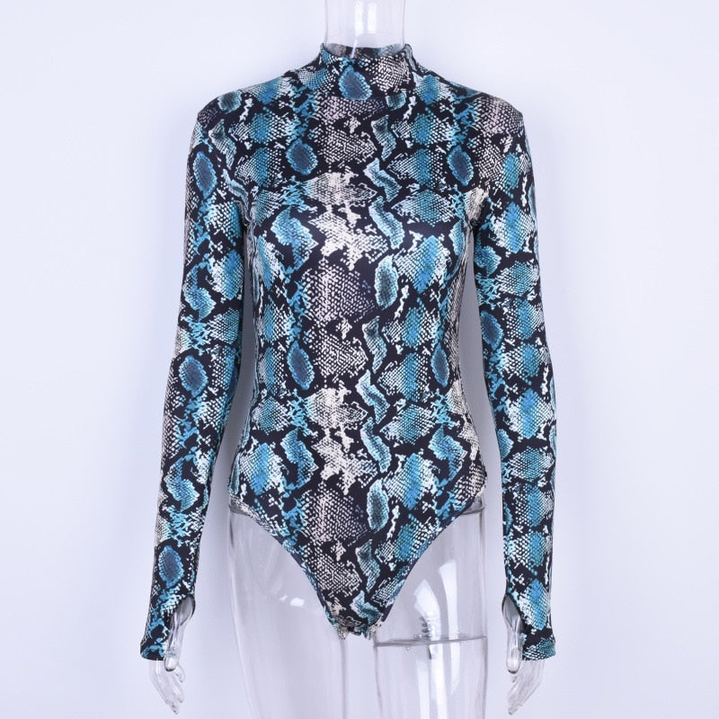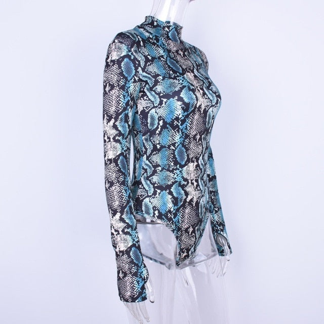 Polyester Cotton Snake Pattern Turtleneck Long Sleeve Bodysuit