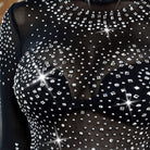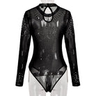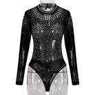 See-Through Long Sleeve Bodysuit with Rhinestone Decoration and Polyester Material