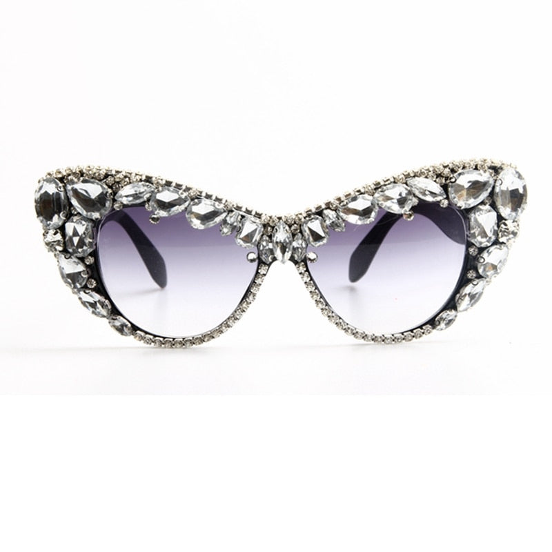 Rhinestone Decorated Cat Eye Sunglasses with Acetate Frame and UV400 Acrylic Lens