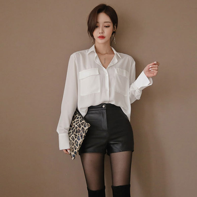 PU Leather Button Fly Pockets and Button Decoration Skinny Shorts