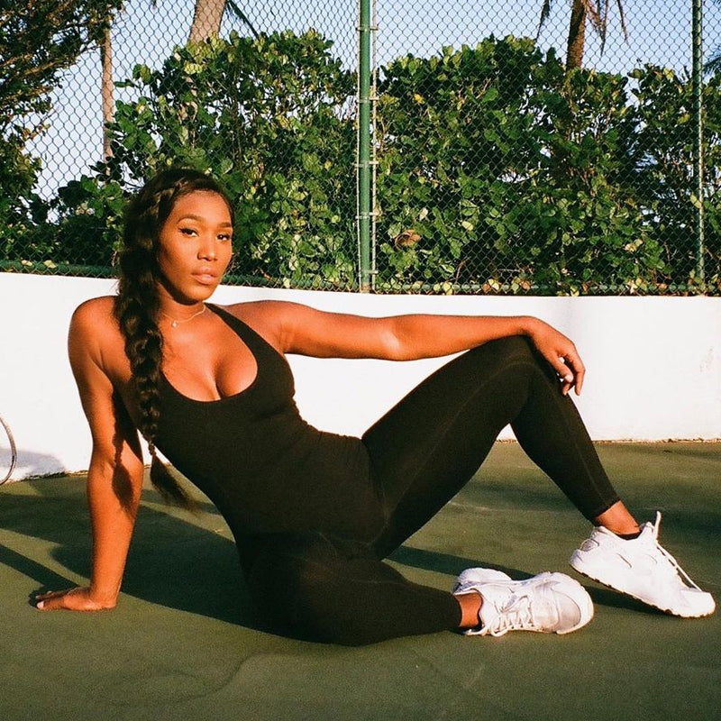 Solid Sleeveless Jumpsuit with Hollow Out Back Style and Made From Polyester Spandex Material
