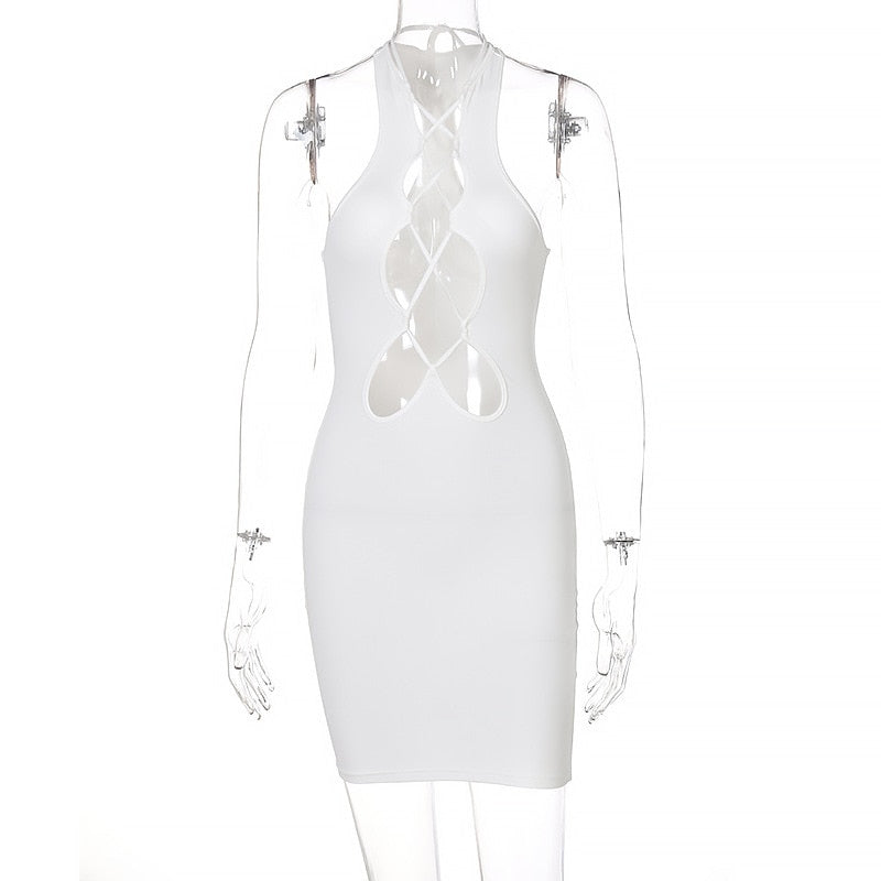 Take a classic silhouette and update it with a contemporary twist that's sure to make a lasting impression. This dress has a trendy hollow-out design with a sleeveless design and a V-neck style, which makes it very suitable for the summer season. The dress is made from a soft and comfortable fabric and it is easy to wash and iron.