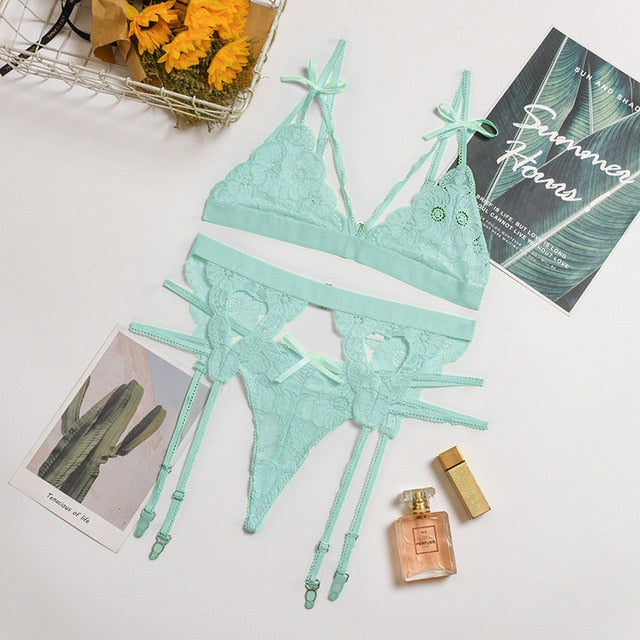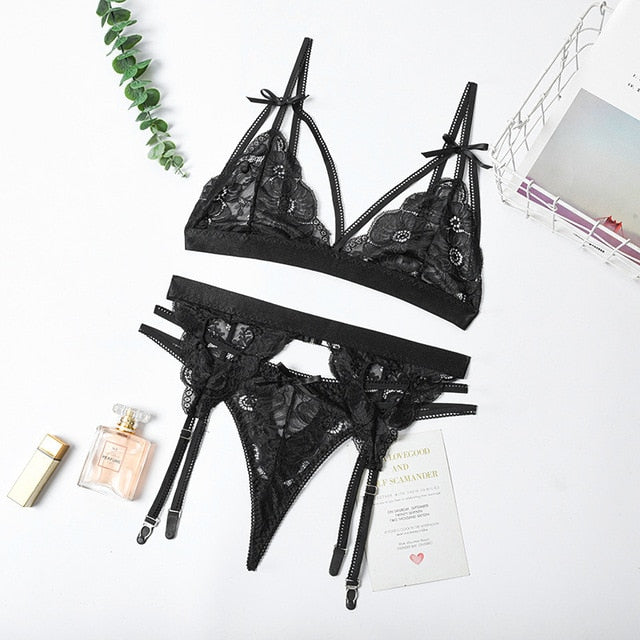 Polyestet on 3/4 Cup Unlined Adjusted-straps Lingerie Sets