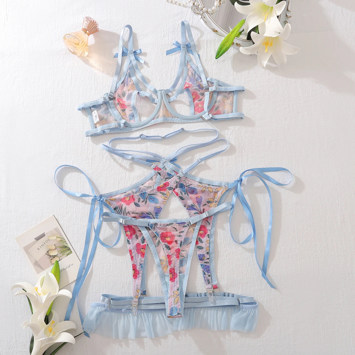 Turn up the heat with this fearless floral lingerie that blends delicate beauty with raw sensuality. Constructed from premium polyester, it delivers a sleek, luxurious feel that moves with your body. The striking floral pattern adds an unexpected edge—romantic yet rebellious, soft yet provocative. This piece celebrates the contradiction of being both elegant and daring, designed for those who refuse to choose between sophistication and seduction.