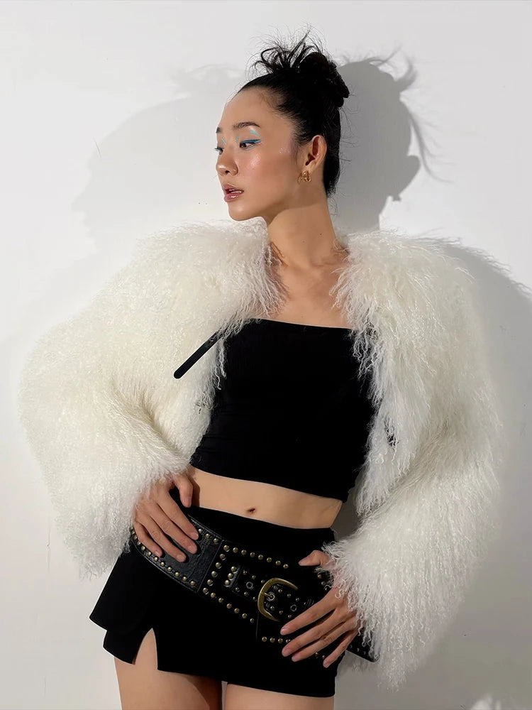 Candlelit Corner Crop Jacket Step into the spotlight with this audacious crop jacket designed for those who embrace their edge. Built from premium polyester with striking fur accents, it combines modern attitude with tactile luxury. The cropped cut hugs your frame while the fur detailing adds an unexpected layer of glamour and texture. Perfect for nights when you're ready to turn every corner into your moment. This is the jacket that whispers confidence and screams style.