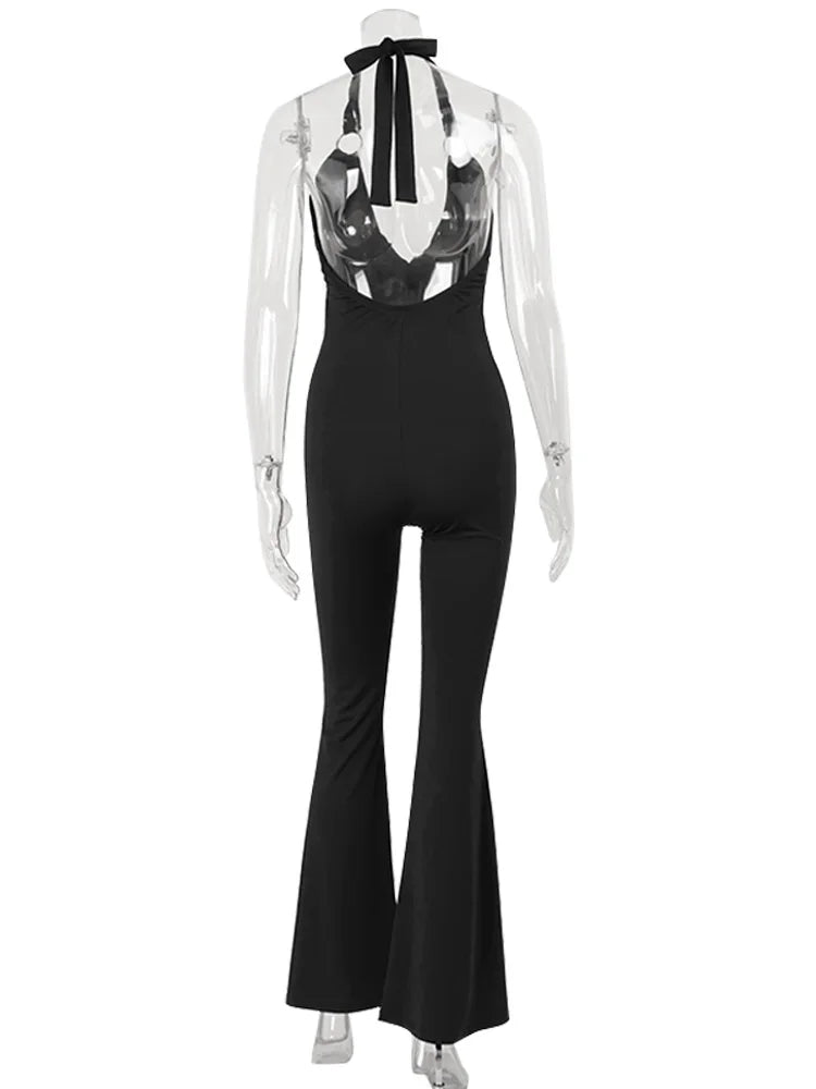Femme Power Jumpsuit Own your power in this striking black jumpsuit that strips away pretense with its daring backless design. The flowing flare pants create dramatic movement with every step, while the open back reveals confidence and allure. Sleek, sophisticated, and unapologetically bold, this piece is engineered for those who refuse to play it safe. Perfect for making an unforgettable entrance at any event where you're ready to command attention and celebrate your strength.