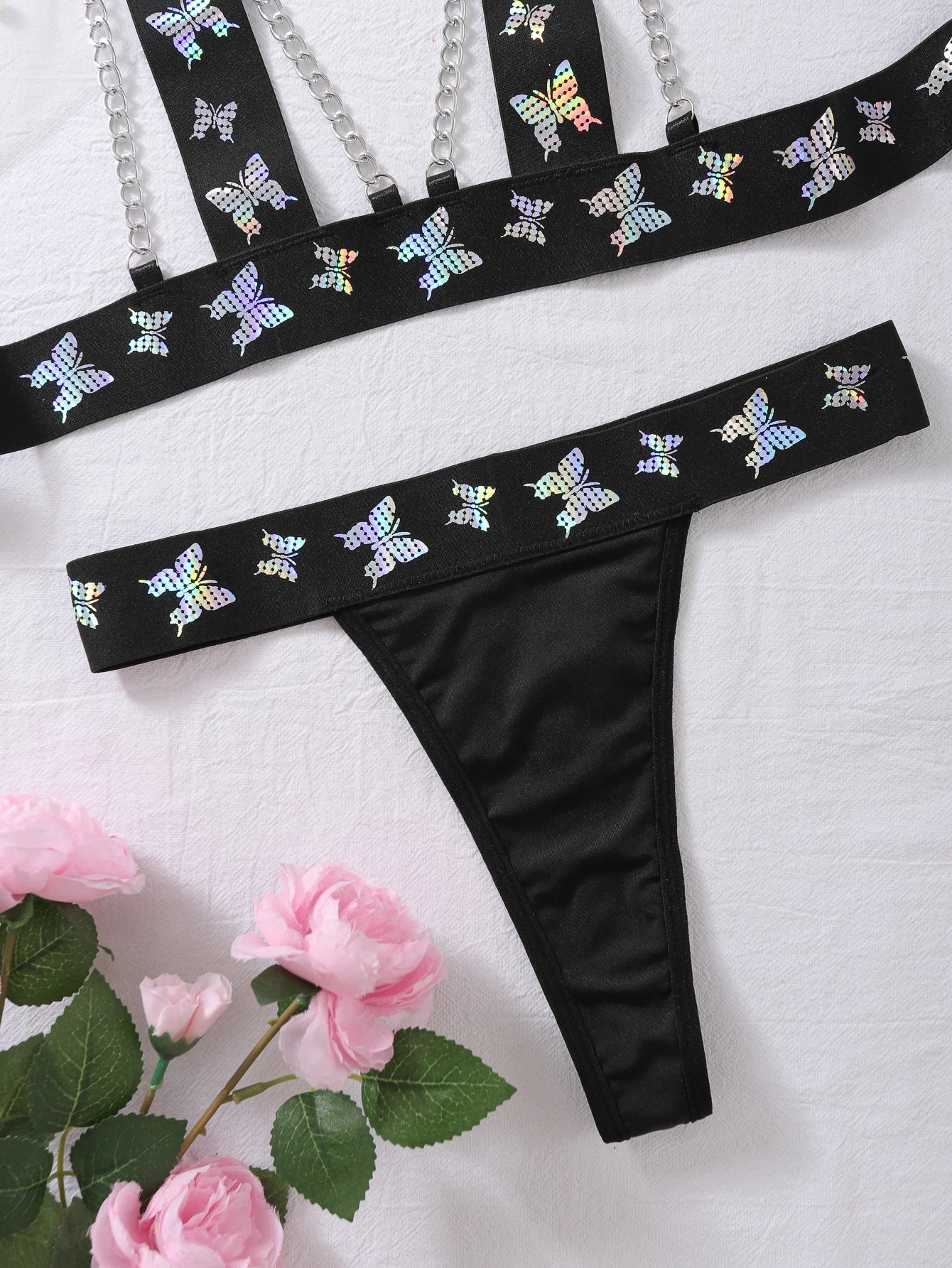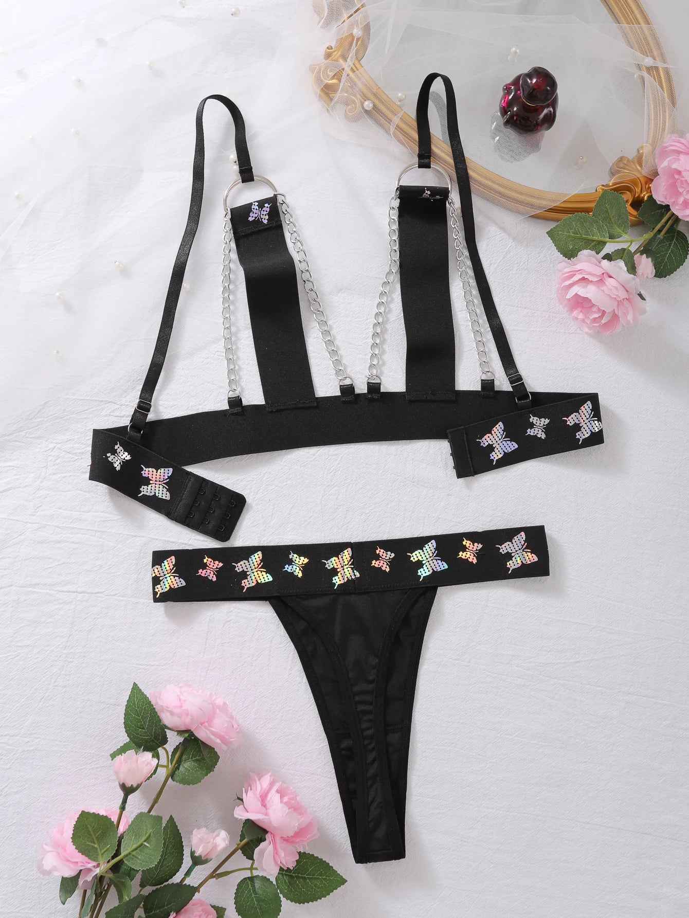 Transform into a sexy butterfly with our I've Been Broken Lingerie Set. Made from soft, luxurious polyester blends and adorned with delicate butterfly-shaped lace, this set will make you feel confident and sensual. The addition of a chain decoration adds a touch of playfulness and intrigue. Indulge in your femininity and spice up your love life with this beautiful set.