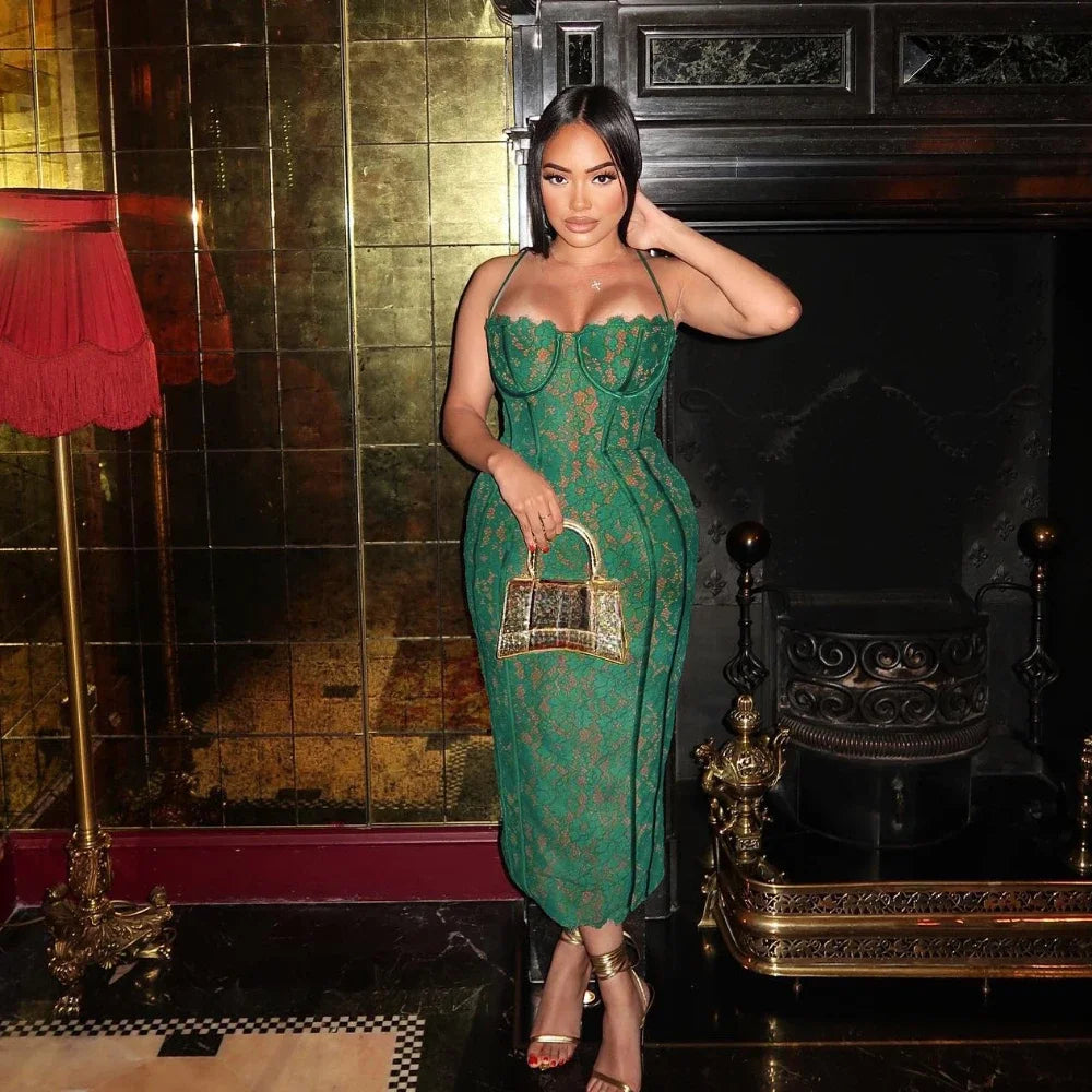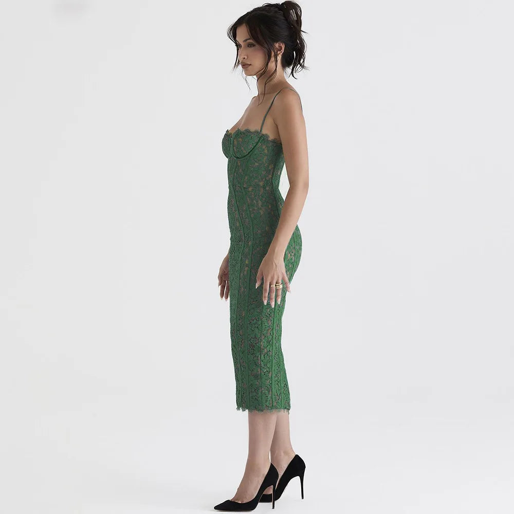 Wrap yourself in elegance with our midi dress! This solid colored dress features a flattering midi length and delicate lace details, made from high-quality polyester. Perfect for any occasion, this dress will make you feel confident and beautiful.