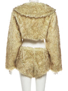 Embrace your boldest self in this audacious Quiet Cabaret Shorts Set. Crafted from a luxurious elastane and polyester blend, these shorts deliver exceptional stretch and comfort for uninhibited movement. The plush fur detailing adds an unapologetic touch of glamour and edge, transforming this piece into a statement-making essential.