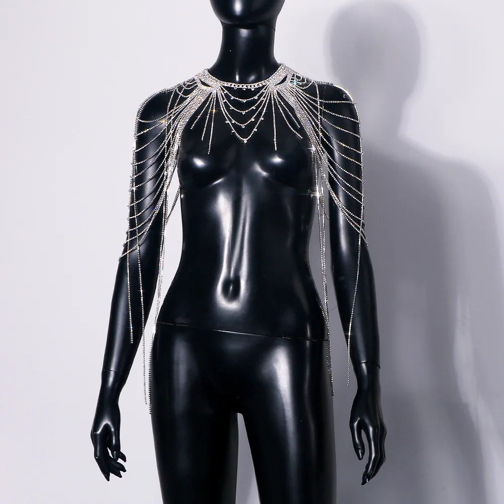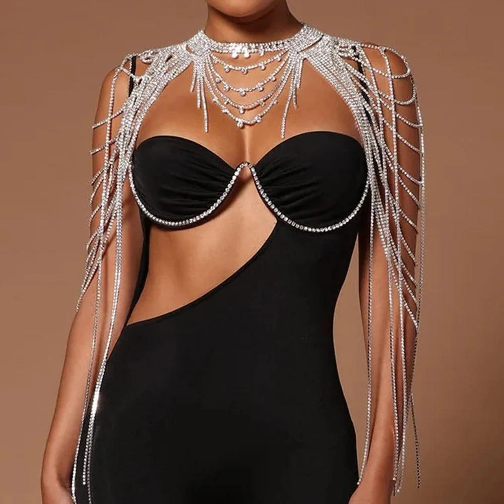 Elevate your style with our Sippin' On Sunset Body Jewelry. Made of high-quality copper and adorned with sparkling rhinestones, this necklace with a unique tassel design and geometric pattern will add a touch of glamour to any outfit. Make a statement with this stunning piece!