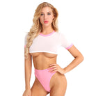 Solid Sheer Crop Top and Briefs Sets with Polymide Spandex Material