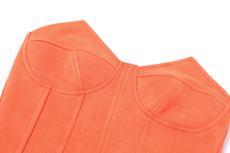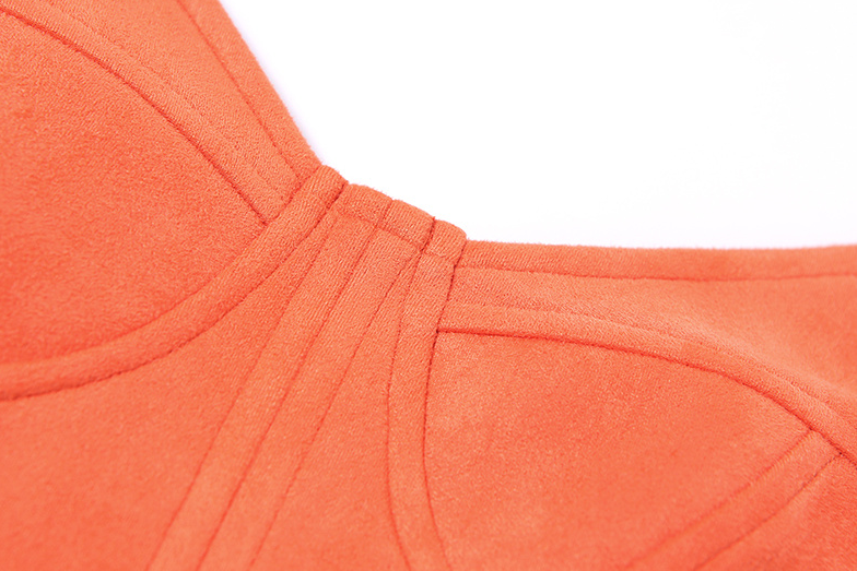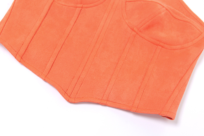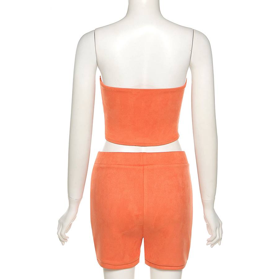 Solid Cotton Velvet Bustier and Shorts Set with Elastic Waist and Lines Decoration