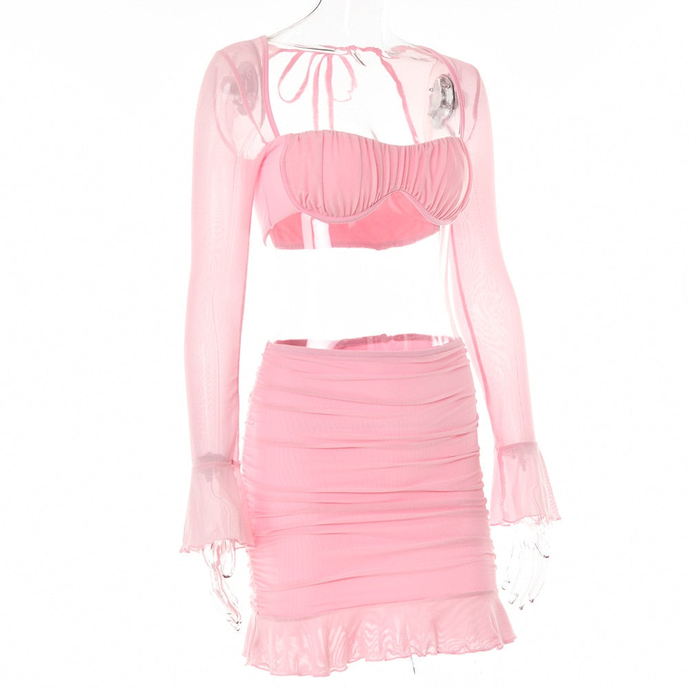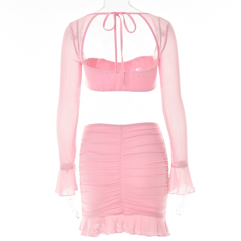 Dress for a night out in style with this trendy yet casual set. Pair with heels and a matching clutch for a playful look that is perfect for a night out. The set has a fun and flirty appearance that can be worn by most women. This set is the perfect way to add a feminine and flirty feel to your summer wardrobe.