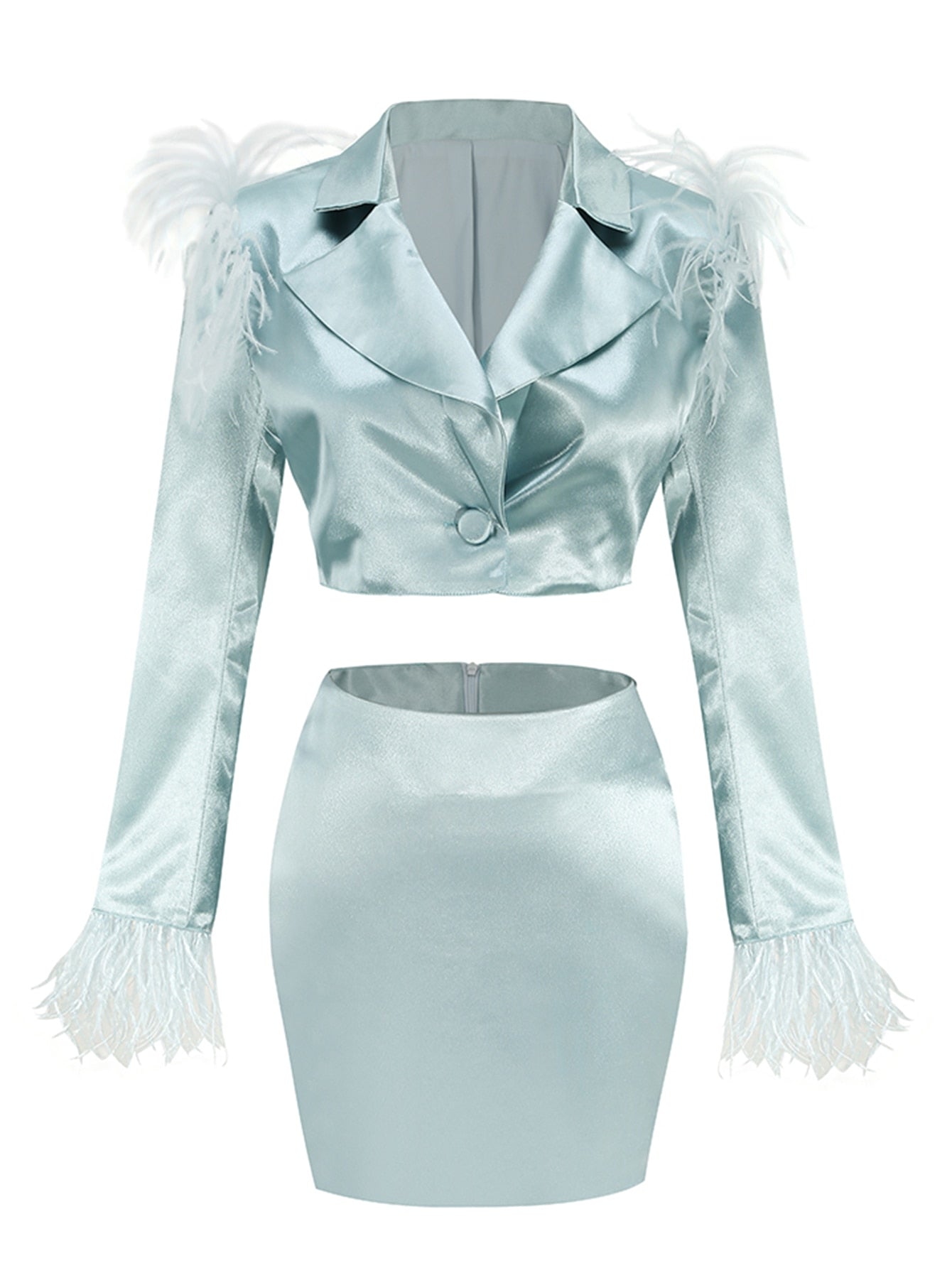 This versatile skirt set comes with two items that are both easy to wear. The set has a slim and stylish silhouette that can be worn with a number of different options to create many looks. The satin material gives neatness and a luxurious feeling to your outfit.