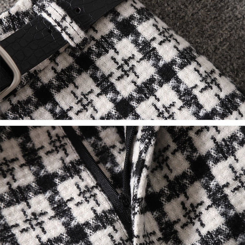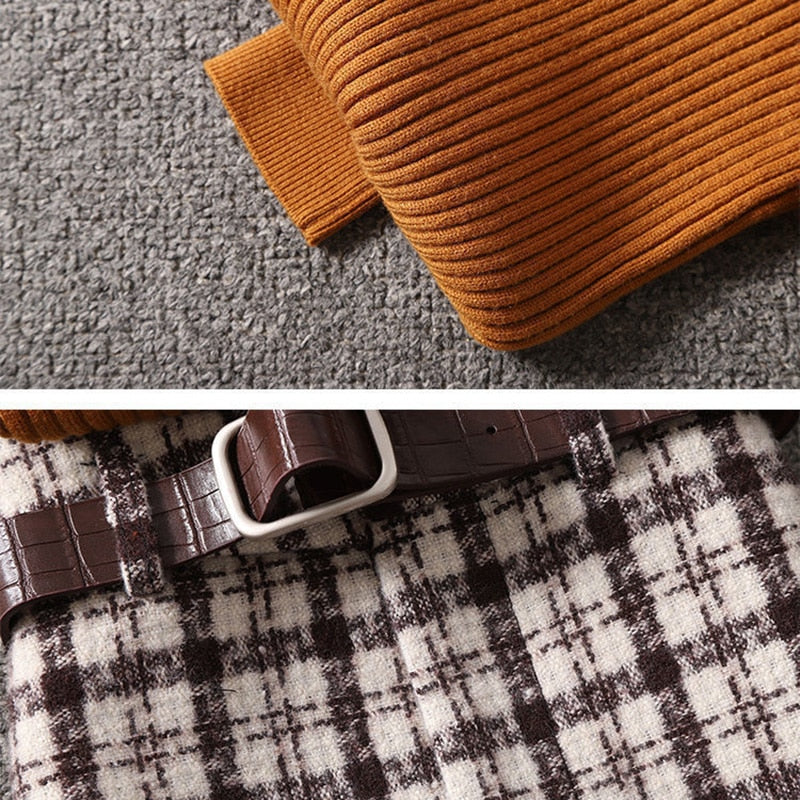 Stay warm and fashionable this fall with this stylish turtleneck sweater and classic plaid pattern midi dress. The zipper closure on the back makes it easy to on and off access.