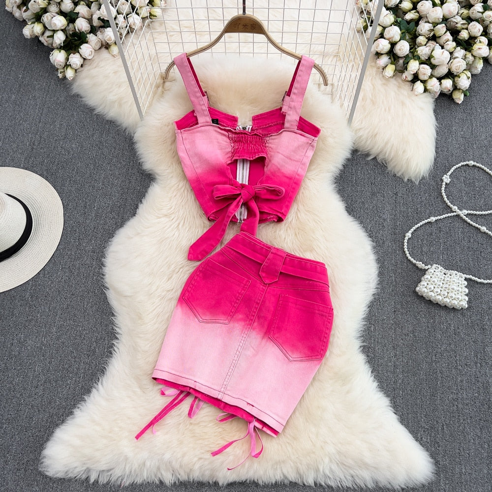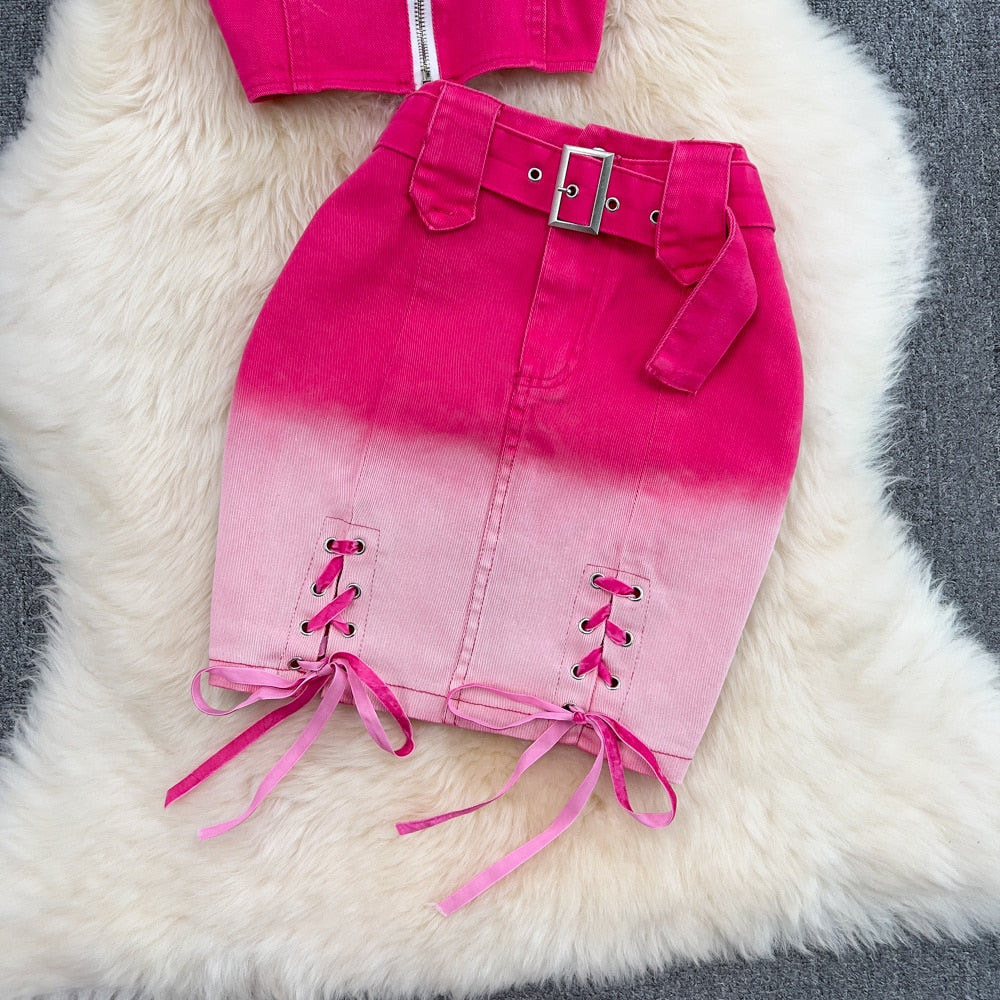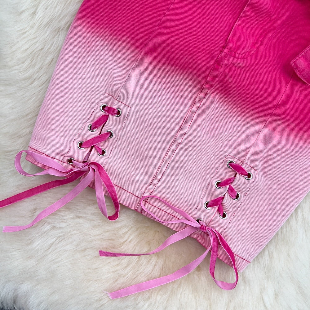 Choose a pair of denim skirts that complement a wide variety of looks. These stylish and versatile styles have been crafted to blend with a variety of other items. The trendy pink gradient coloring is a great choice for a variety of looks. Cute and comfortable, these skirts are ideal for any casual wardrobe.