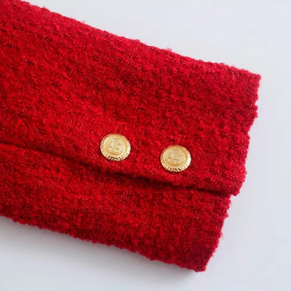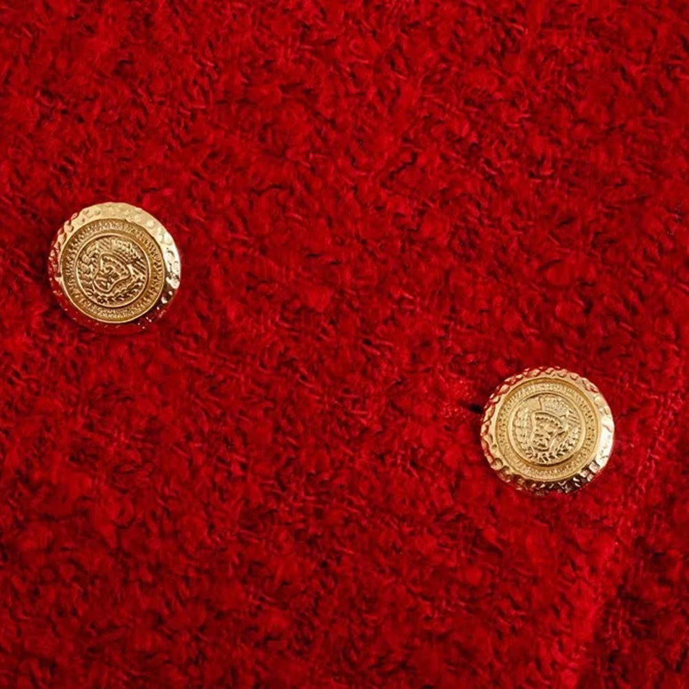 This gorgeous set will make any woman feel like a true diva. The double-breasted blazer has gold buttons that line the front. The mini skirt makes this set looks cute with its simple short cut-out slit design. You'll be sure to turn heads with this show-stopping ensemble.