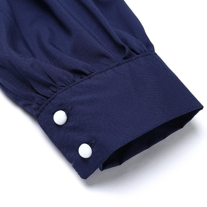 Solid Polyester Spandex Tunic Shirt with Mullet Style and Lantern Sleeve