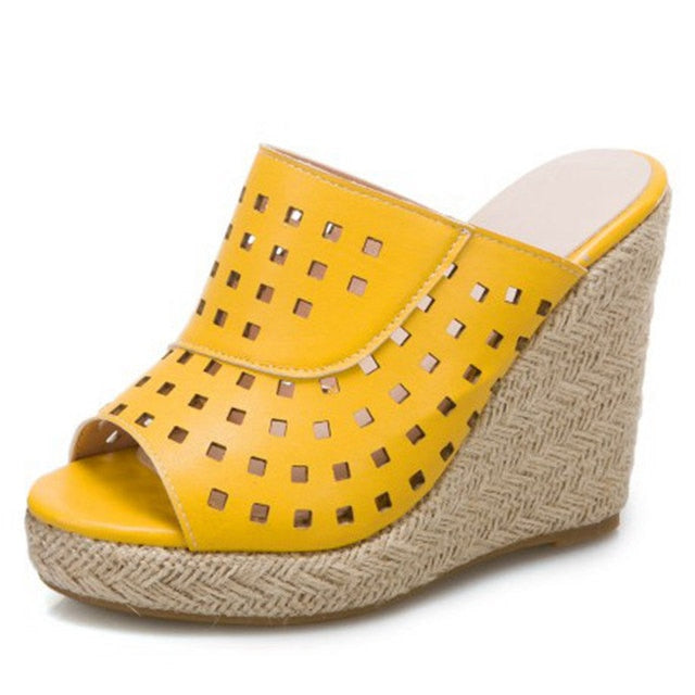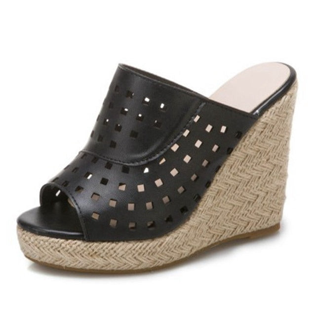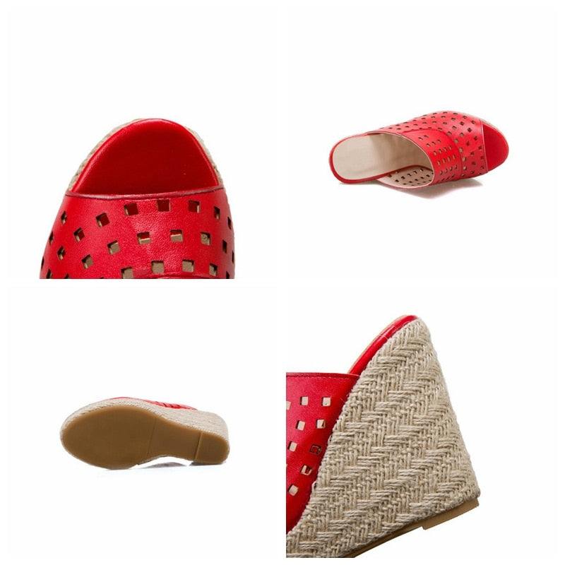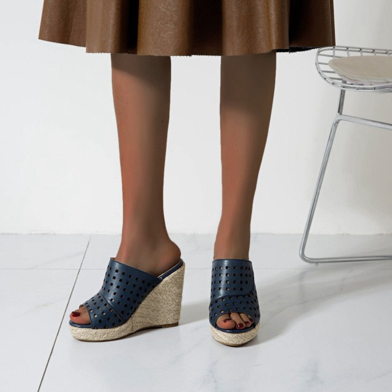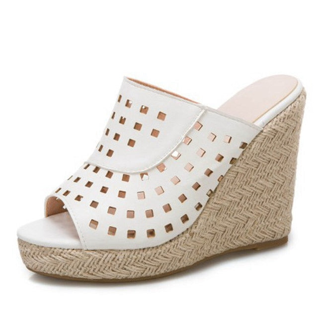 Wear these stylish wedges with everything from skinny jeans to a cute sundress. The classic wedge heel is the ultimate fashion staple that will give you a comfortable, classic look that never goes out of style. It has a square hole on the straps make it look unique and stylish while the wedges heels have a geometric pattern.