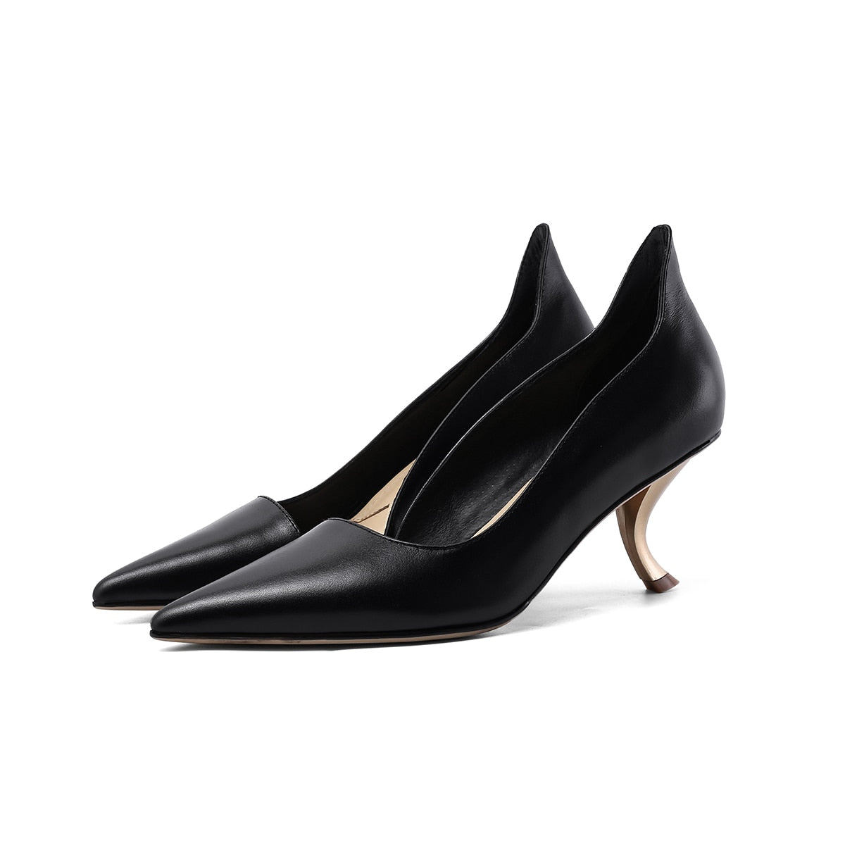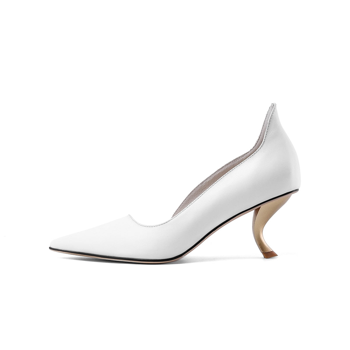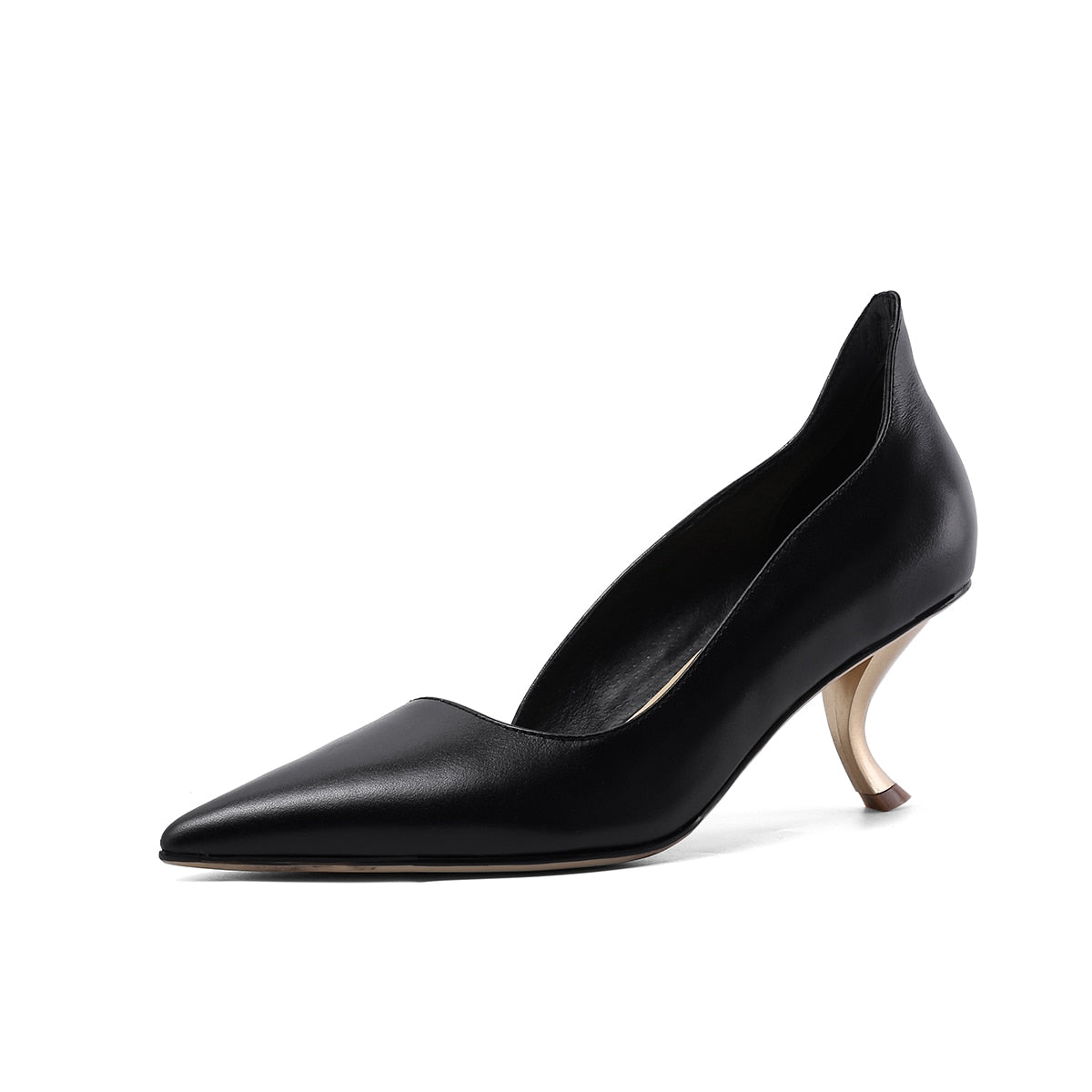 Genuine Leather on Pointed Toe Slip On Strange Heels