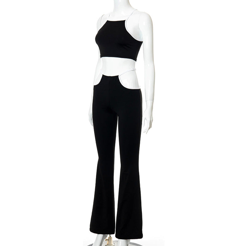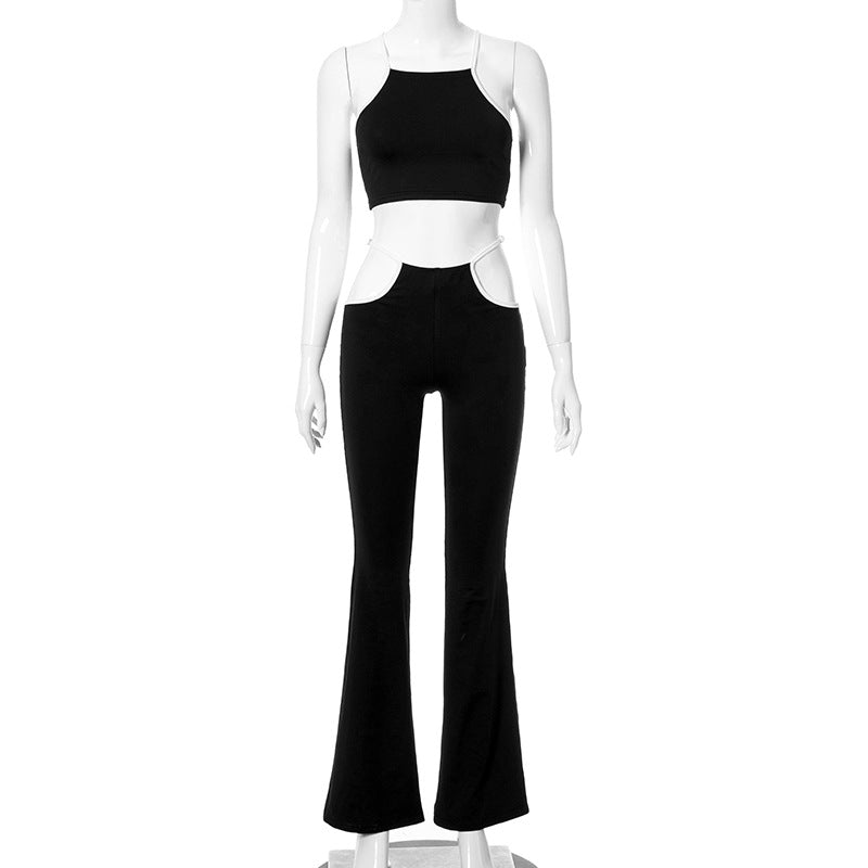 This pants set is perfect to go for a casual look. Come with a sleeveless crop top to make it complete and match. The polyester spandex material makes it comfortable and breathable.