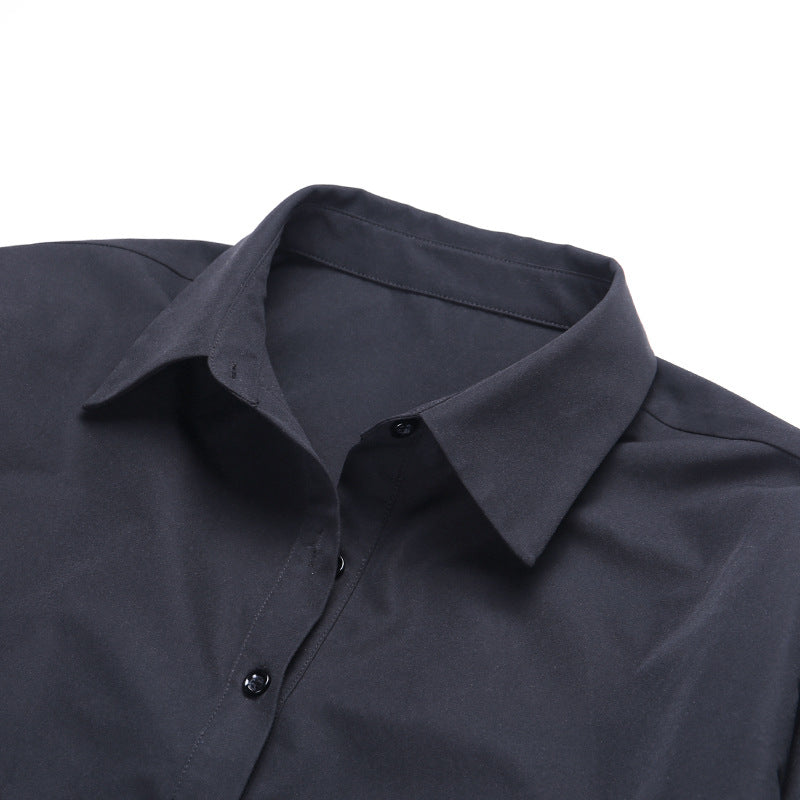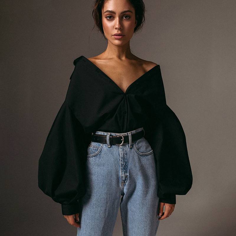 Solid Oversized Cotton Polyester Shirts with Lantern Sleeve and Turn-Down Collar