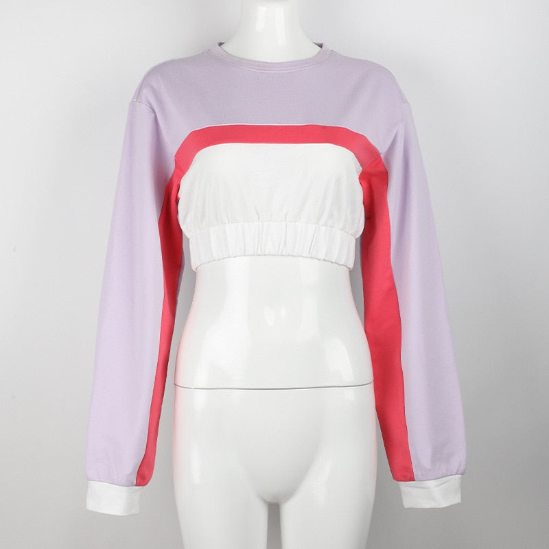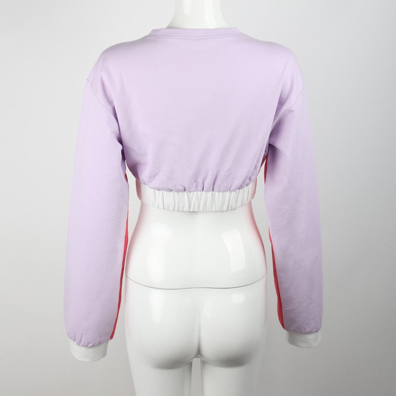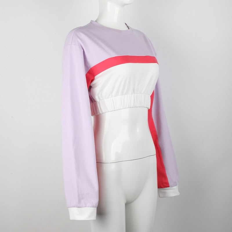 Long-Sleeved Crew Neck Crop Top made from Cotton Material