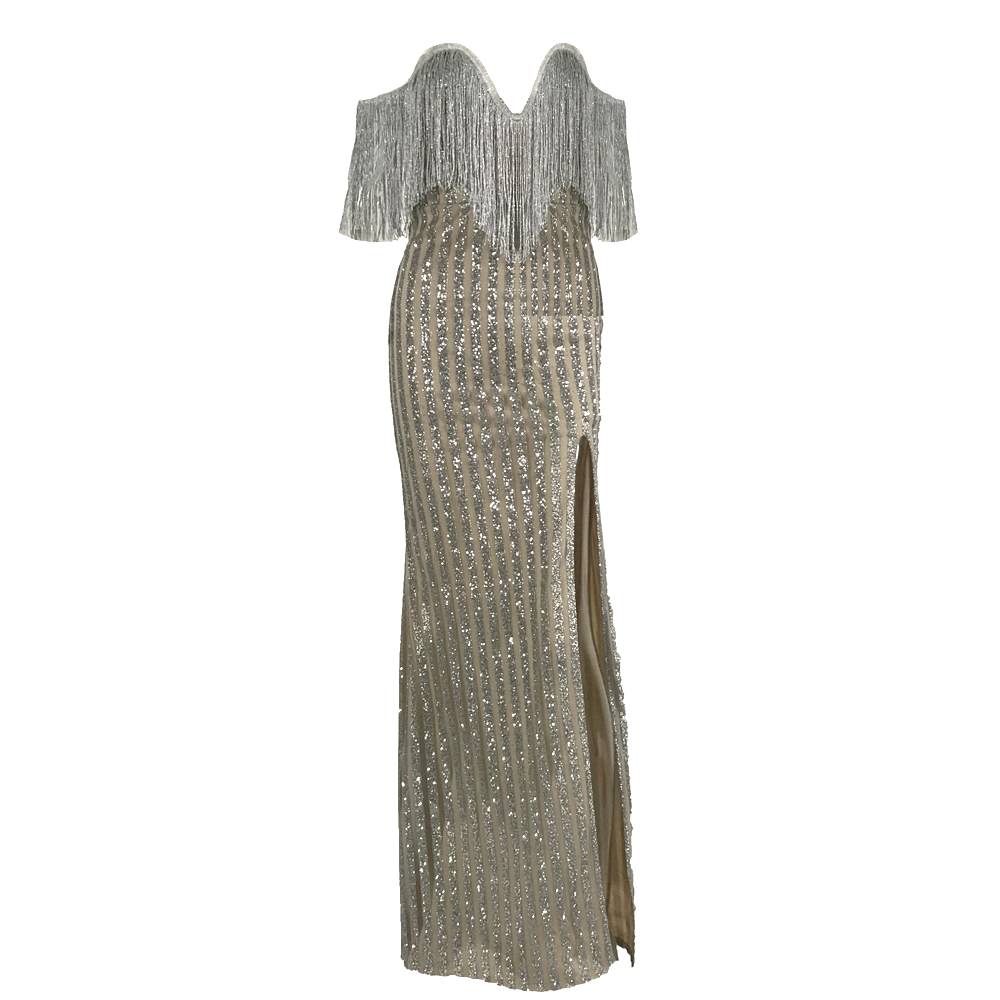 Sleeveless Solid Pattern Long Dress with Tassel Decoration, Sheath Silhouette, and Polyester Material