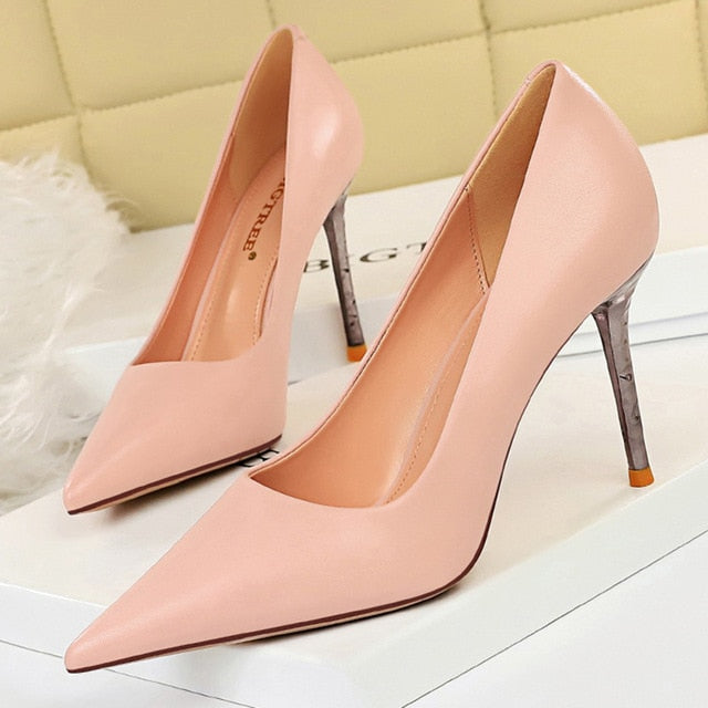 Office Look Heels Shoes with Solid Color, Rubber, and PU Material