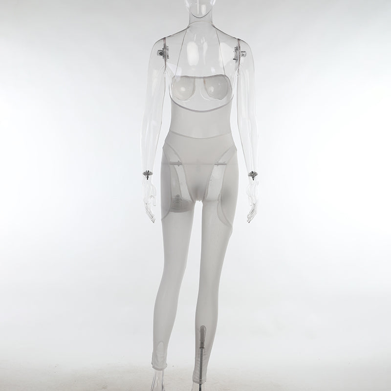For those looking for a fashionable and comfortable way to cover up on those warm spring nights, this see-through jumpsuit is a great option. A simple halter strap provides the perfect amount of coverage and makes this jumpsuit easy to move around in. They can also be worn as a swimsuit for those sunbathing days.