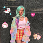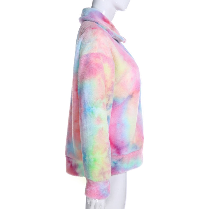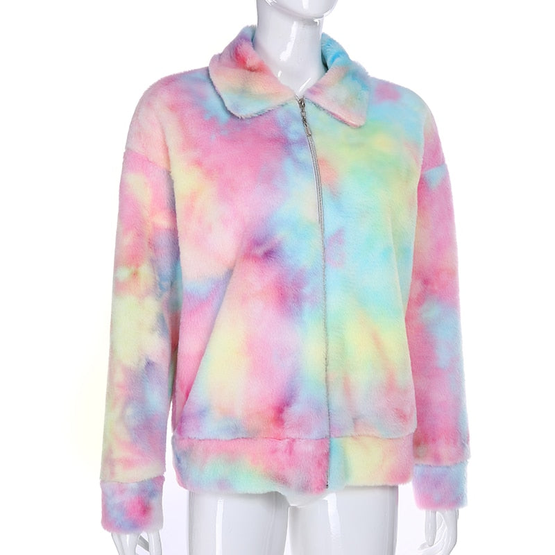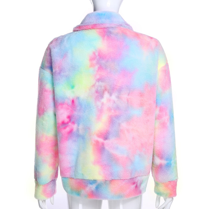 Color Contrast Jacket And Crop Sweater With Zipper Closure And Faux Fur Material