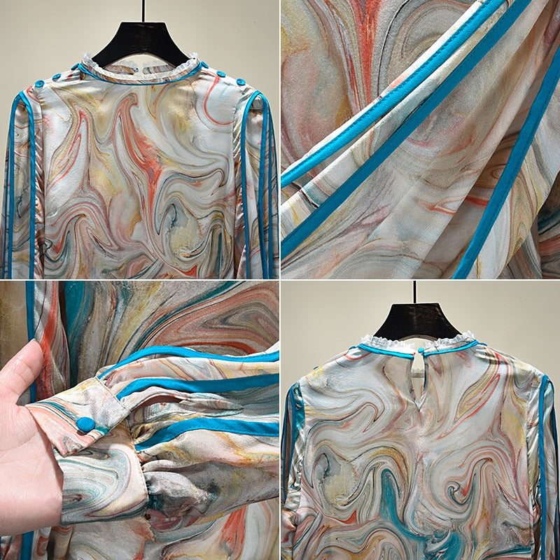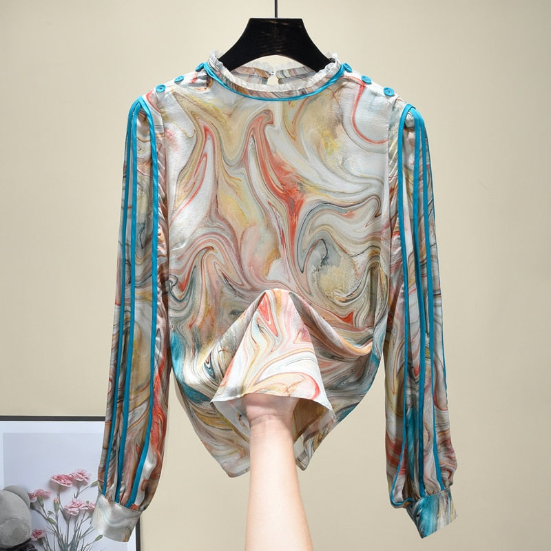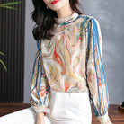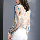 Long-Sleeved Chiffon Blouse with Geometric Pattern and Button Decoration