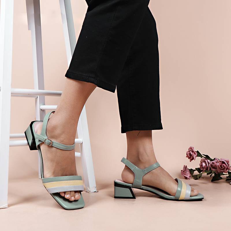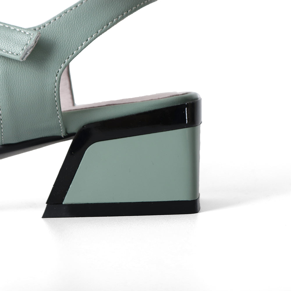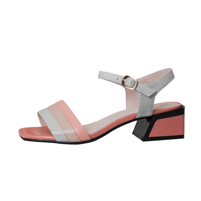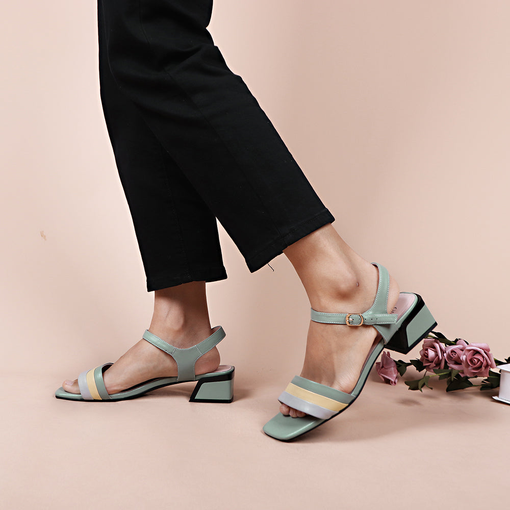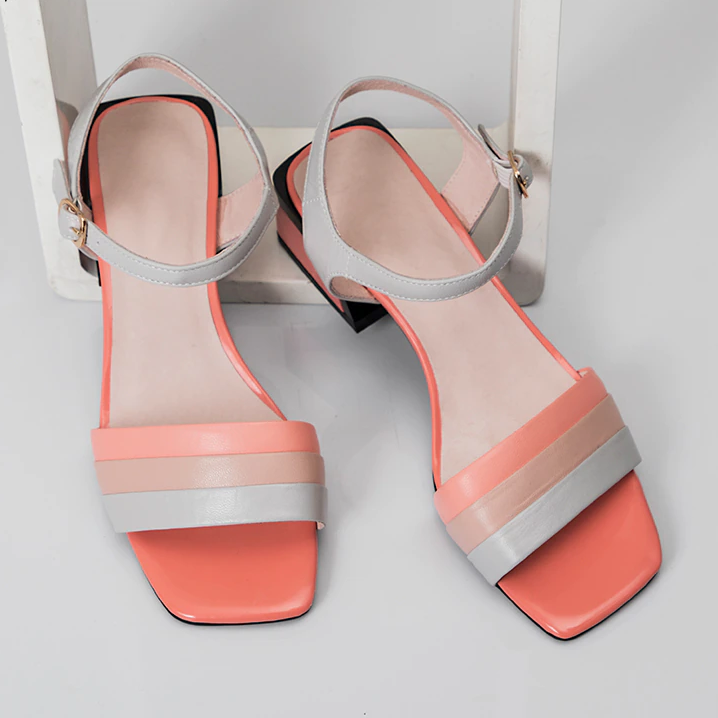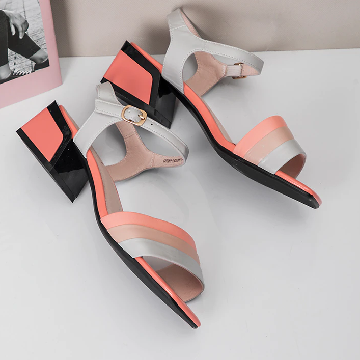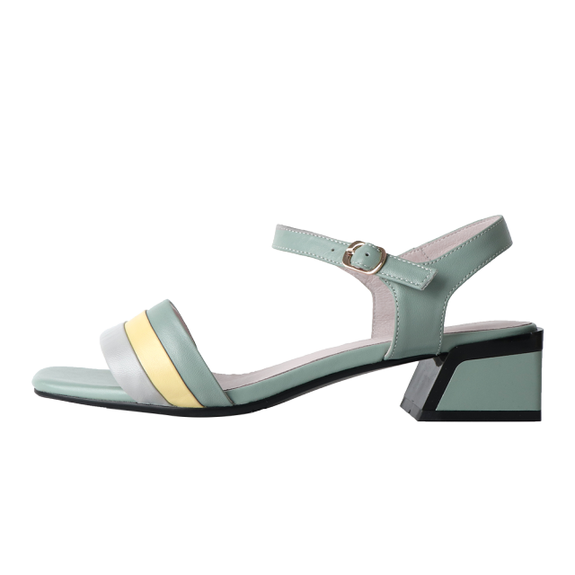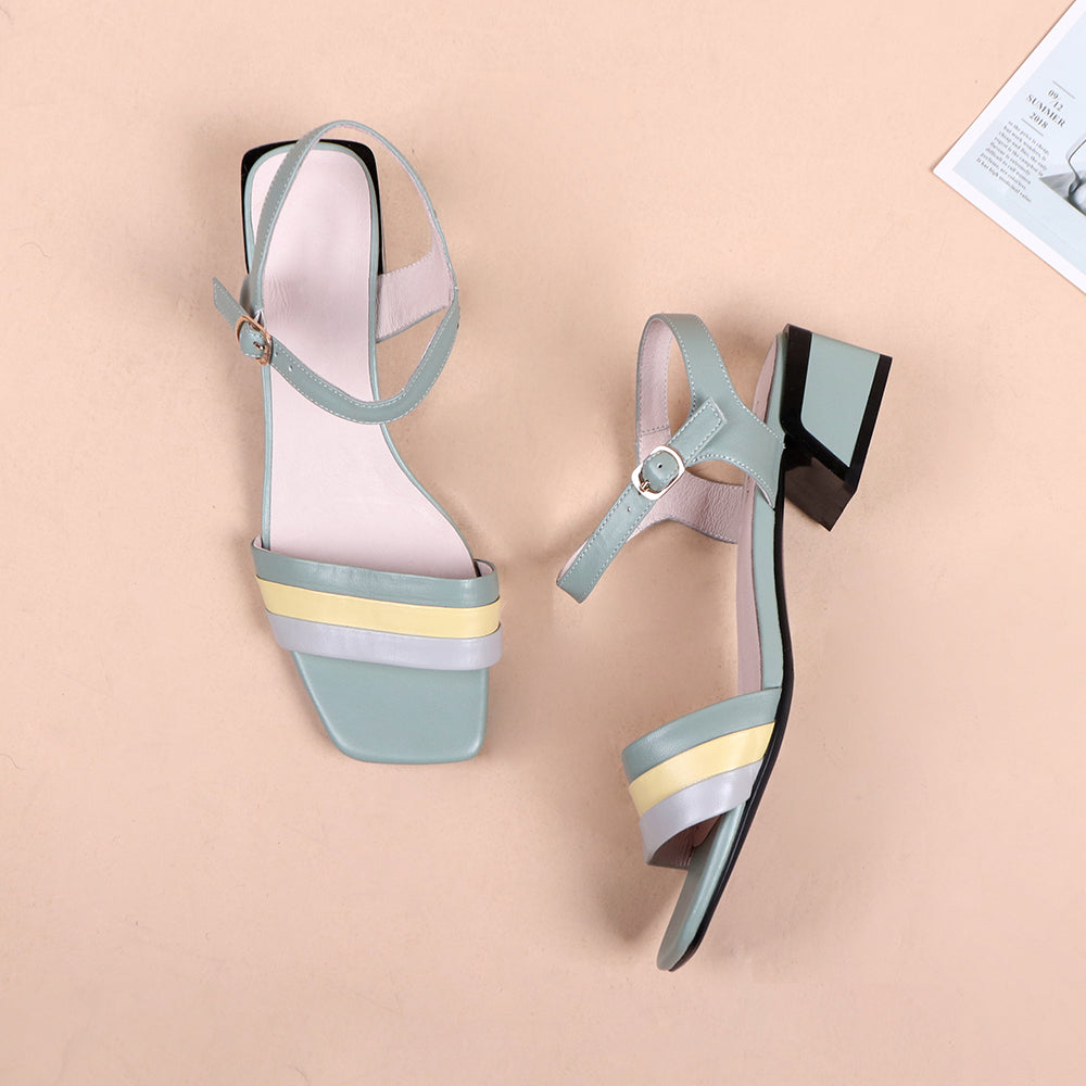 Ankle Strap Sandals with Genuine Sheepskin Leather Upper Material, Chunky Heels, and Square Toe