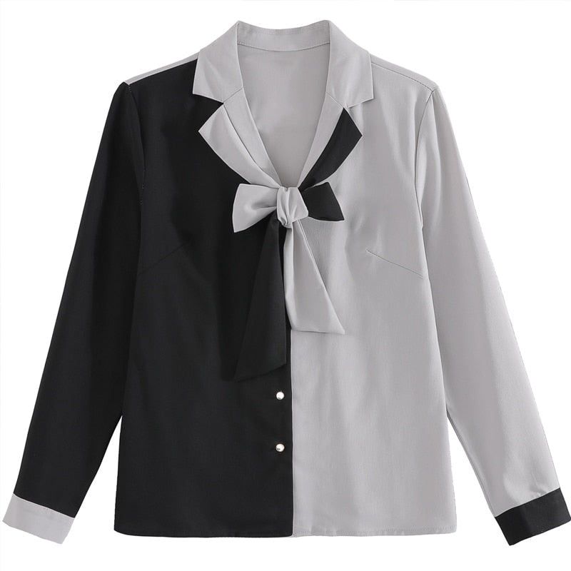 Two-Toned Color Shirt with Notch Lapel Collar made from Chiffon Polyester Material