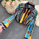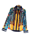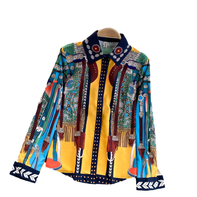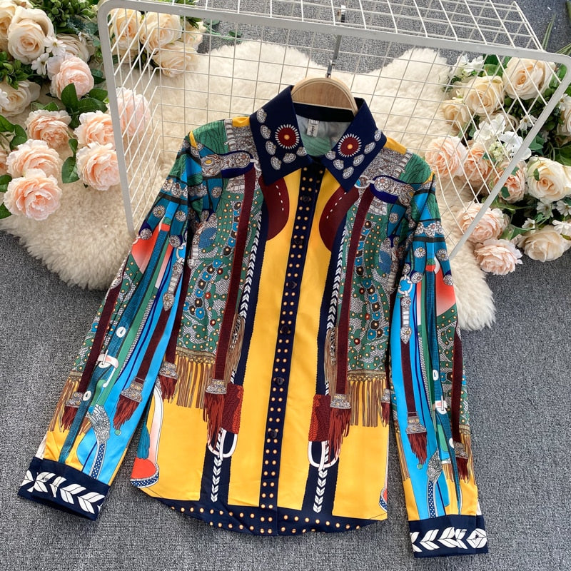 European Pattern Style Shirt with Turn-Down Collar and Button Closure